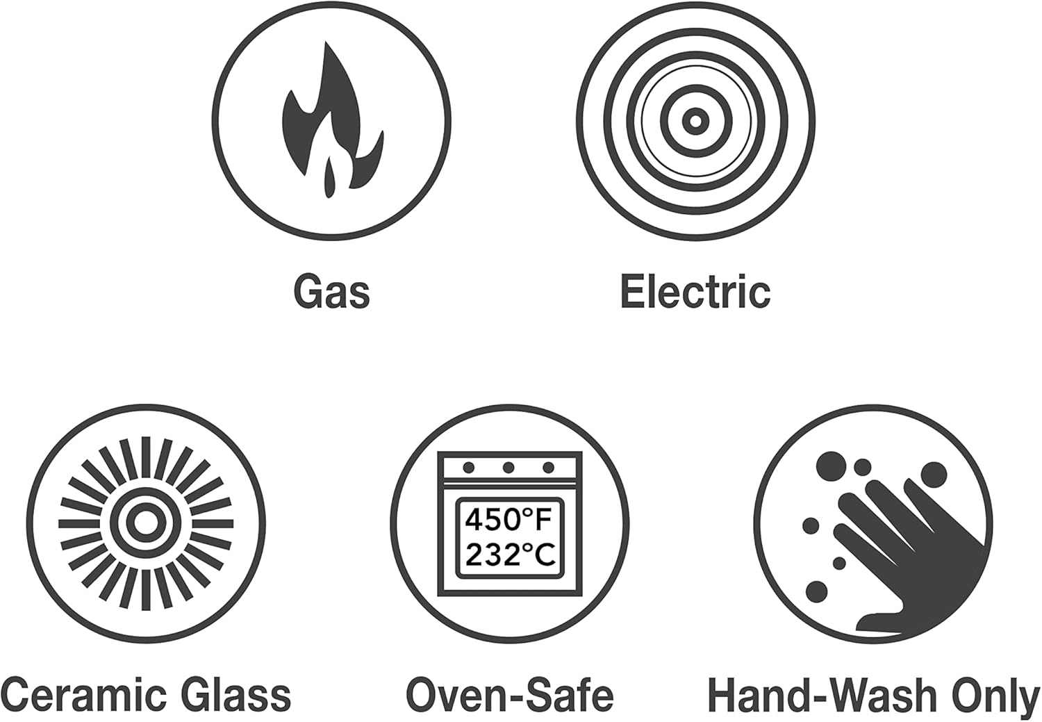 • Versatile and User-Friendly: Oven-safe up to 450°F (232°C) and compatible with gas, electric, ceramic glass, and induction cooktops. Integral cast iron handles ensure a secure grip and elegant functionality.