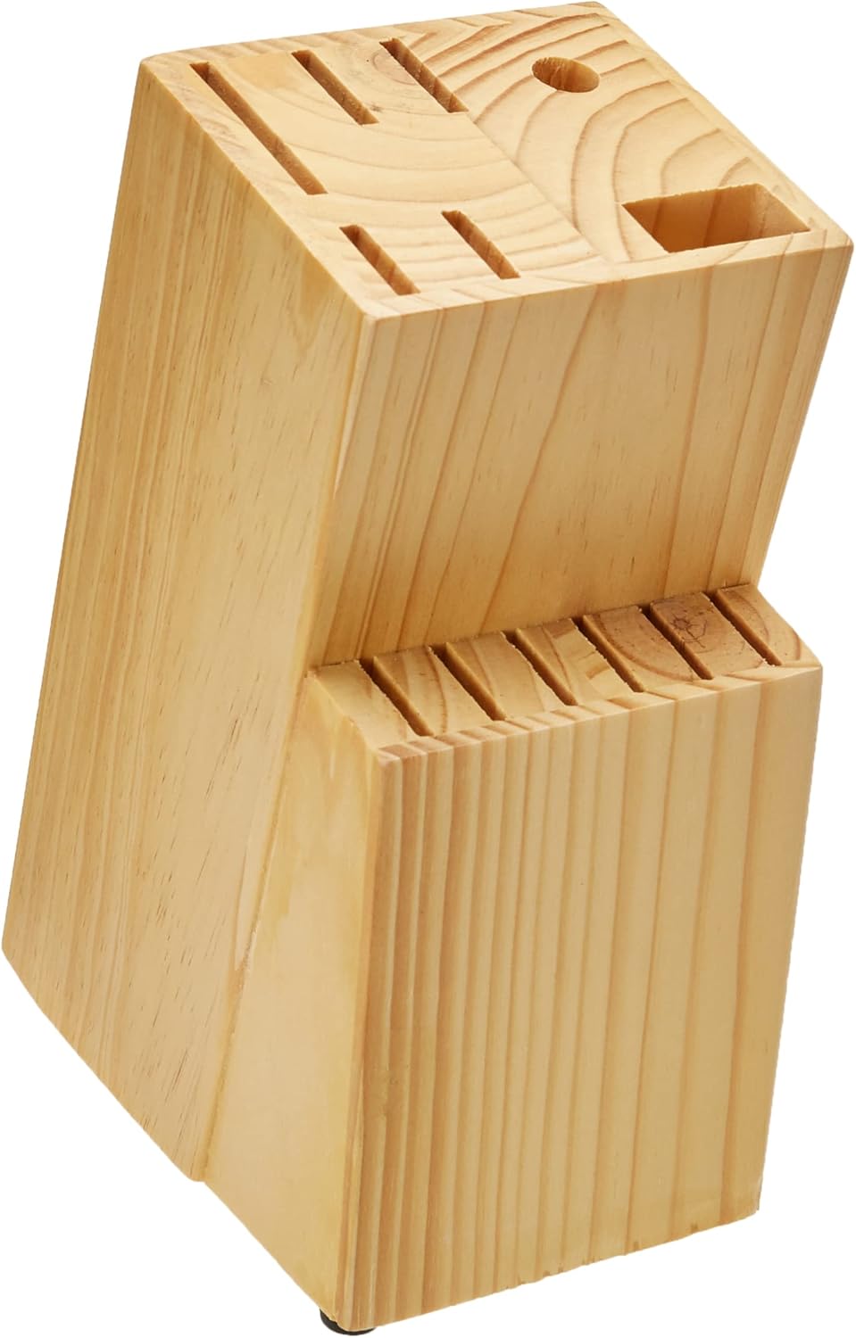 Amazon Basics 14-Piece High Carbon Stainless Steel Kitchen Knife Set with Sharpener and Pinewood Block, Black