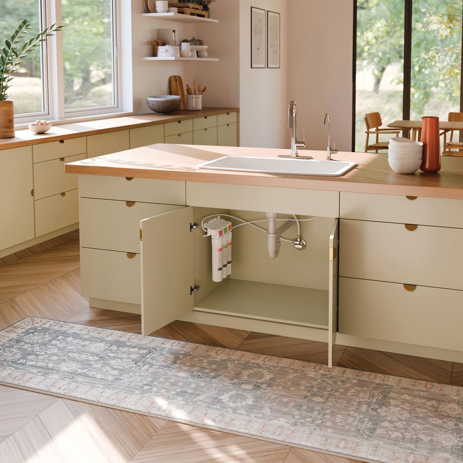 Brondell Coral UC300 Under Sink Water Filtration System – Reduces PFAS, Lead, & Chlorine in Drinking Water, Water Purifier with Designer Chrome Faucet – Quick Change Filter, WQA Gold Seal-Certified