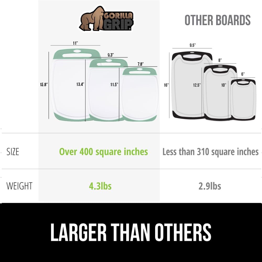 GORILLA GRIP BPA-Free Reversible Kitchen Cutting Board Set of 3, US Designed, Nonporous, Juice Grooves Catch Liquid, Slip Resistant Border, Dishwasher Safe, Durable Large Food Chopping Boards, Mint