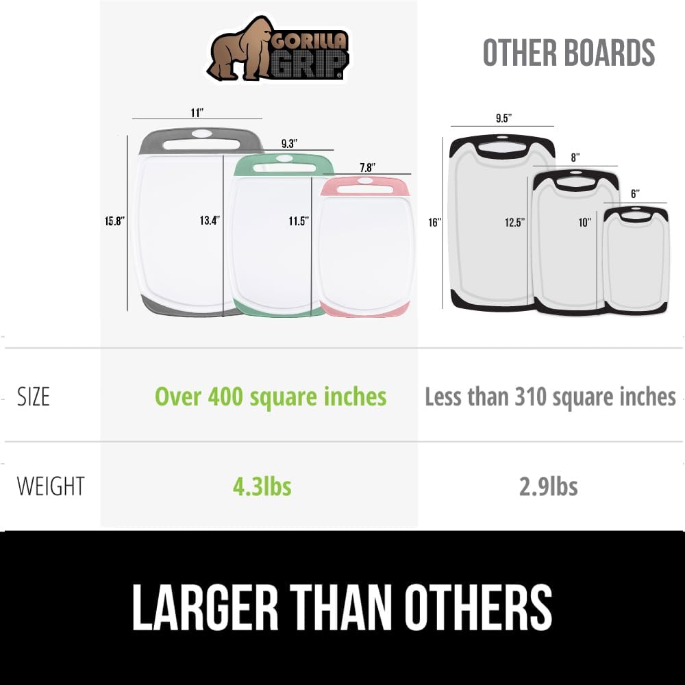 GORILLA GRIP BPA-Free Reversible Kitchen Cutting Board Set of 3, US Designed, Nonporous, Juice Grooves Catch Liquid, Slip Resistant Border, Dishwasher Safe Large Food Chopping Boards, Gray Mint Pink