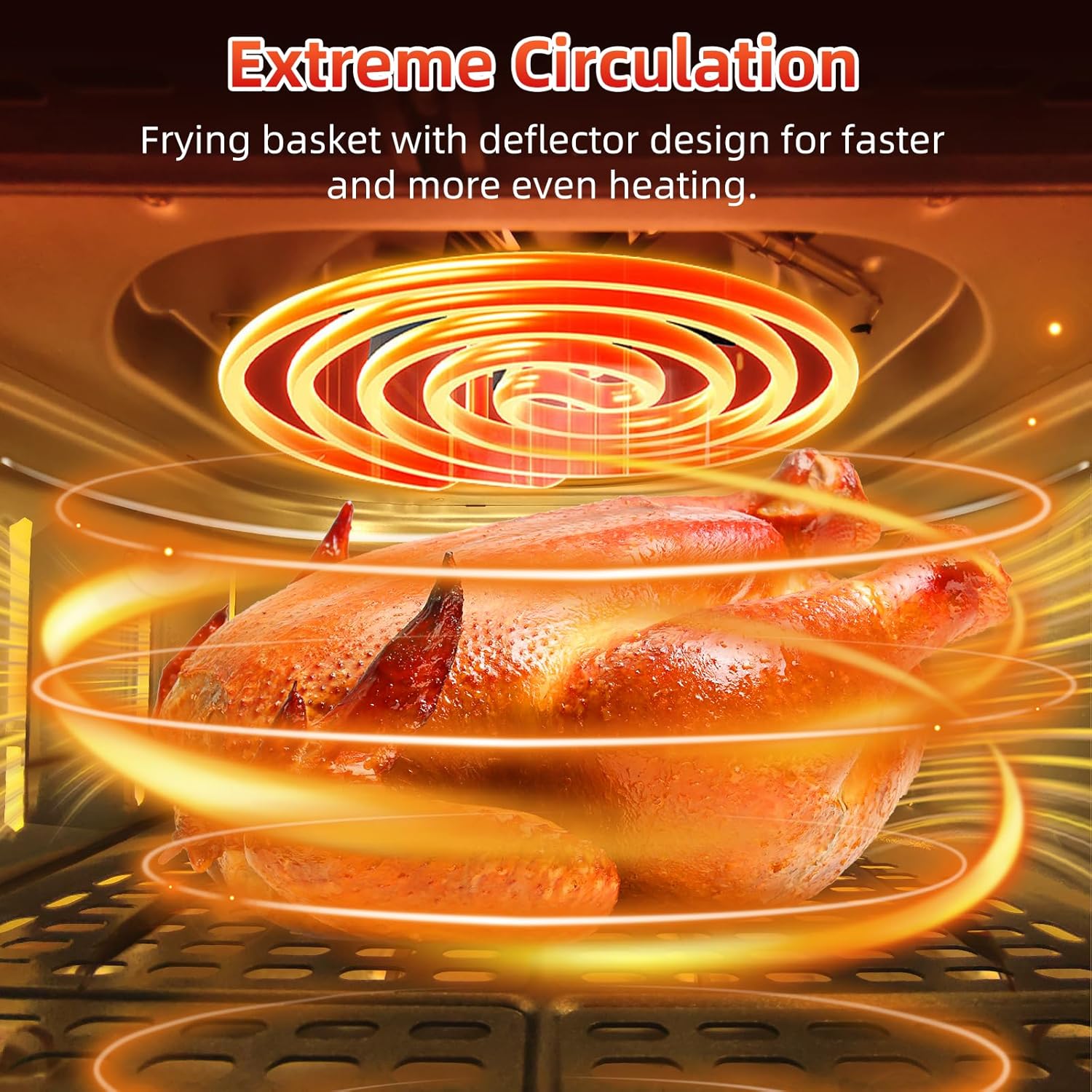 • 🍕Large Capacity: You can easily use 5.8QT / 5.5L air fryer to fry a 5 lbs-6 lbs whole chicken, bake a delicious cake, fry delicious steak and chicken drumsticksand, or cook other large foods for a big party. Providing enough food for 2–8 people.