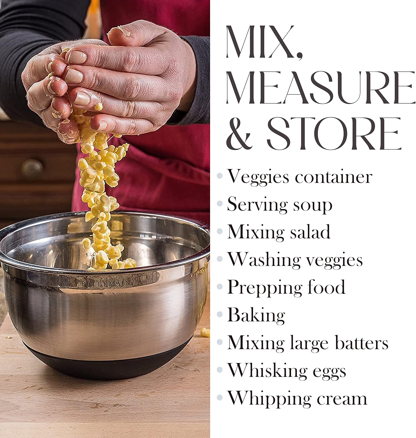 • Beautiful Mirror Finish makes preparing food a delight. Great for food prep, mixing, storing and serving.