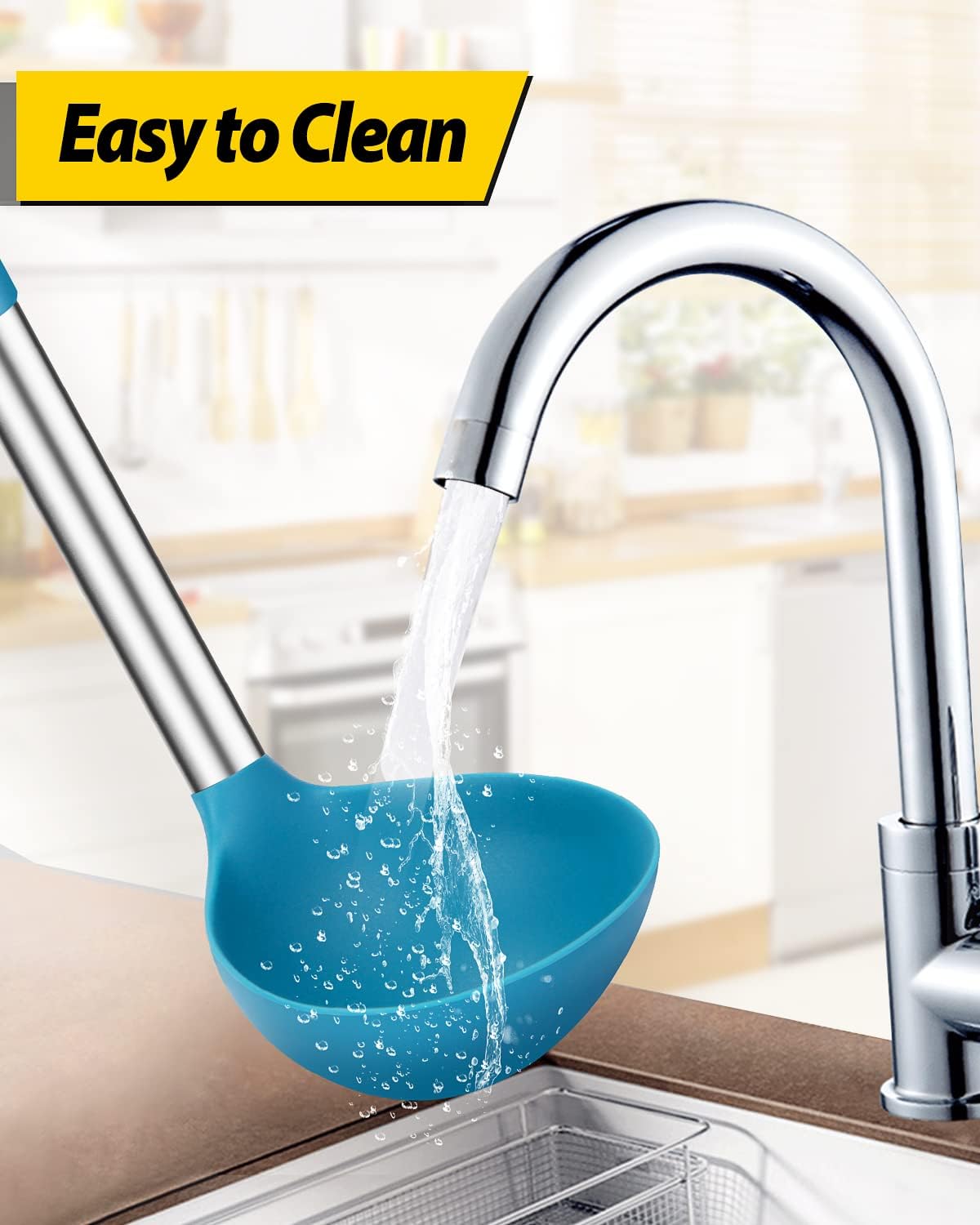 • More Safe and Healthy : Our kitchen ladle spoons are made of food-grade silicone, free of BPA;Even at high temperatures, there is no need to worry about melting or deforming;And the soft silicone head won't scratch the coating, it can better protect your pot
