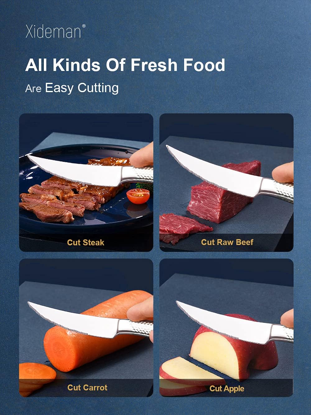 • ALL CAN EASILY CUT: The new two-in-one super sharp serrated knife, double-layer serrated structure, combined with a variety of blades for innovative design. Whether fruit, vegetables, steak or dinner, All CAN EASILY CUT