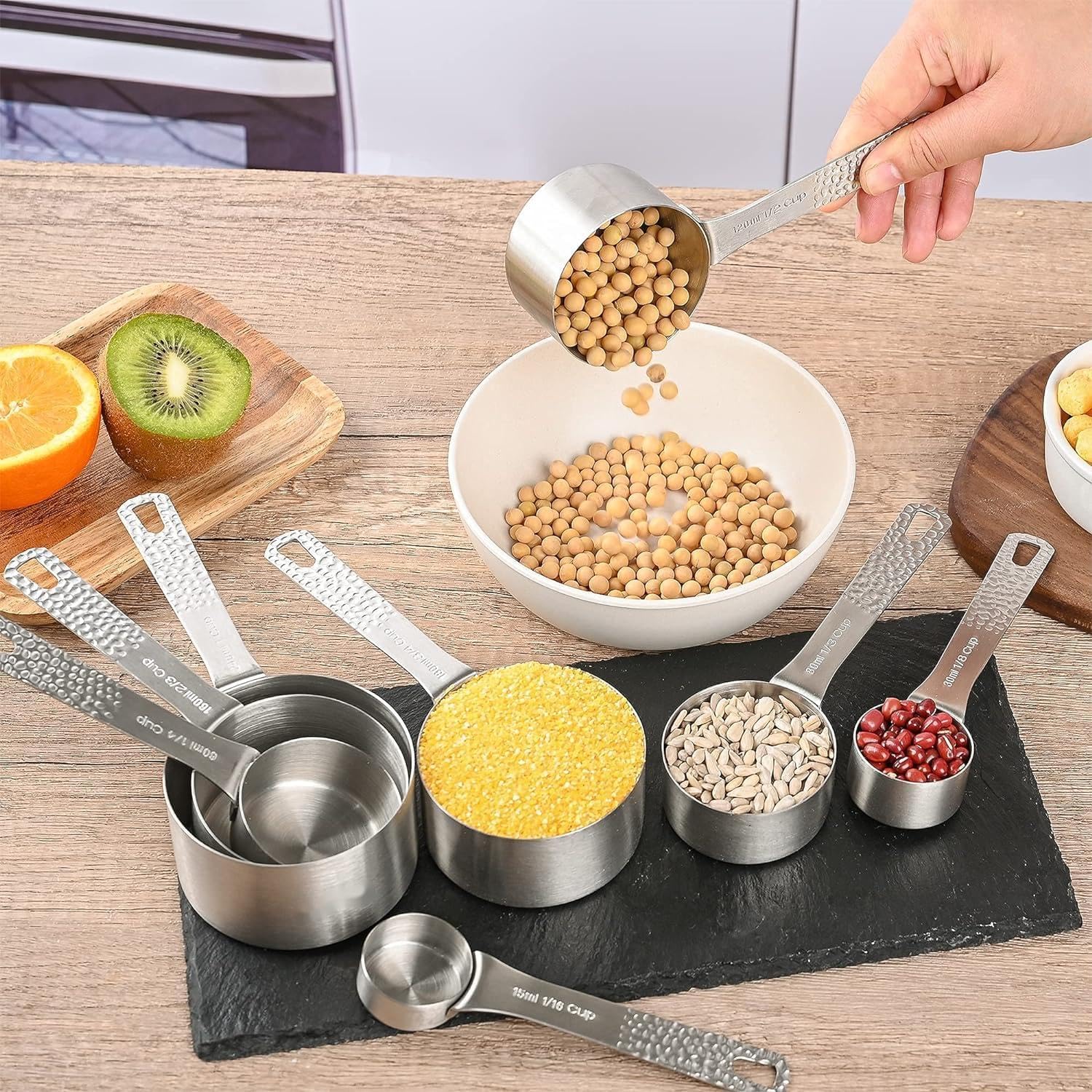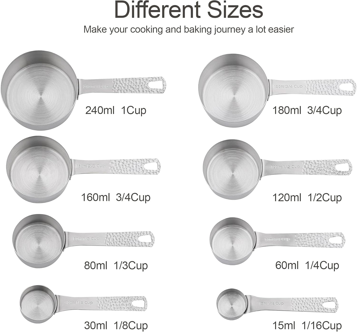Smithcraft Measuring Cups, 8 Piece Dry Measuring Cup Set, 18/8 Stainless Steel Measuring Cups for Baking, Metal Kitchen Measure Cups with 1/16, 1/8, 1/4, 2/3 and 3/4 Cup Measuring Cup, Cooking Gadgets