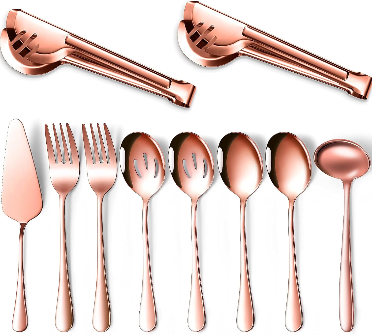 Patelai Serving Utensils Set Include Stainless Steel Large Spoons Slotted Spoons Forks Tongs Soup Ladle and Pie Server for Parties Buffet Catering, Dishwasher Safe(Rose Gold,10 Pieces)