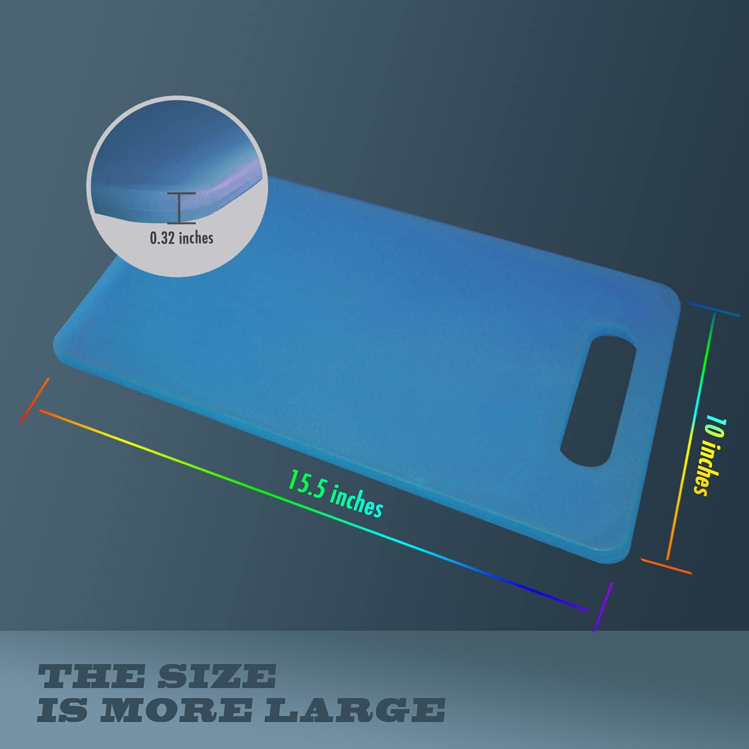 Fotouzy Plastic Utility Cutting Board with Handles, Food Safe PP Material, BPA Free, Dishwasher Safe, Thick Chopping Board, Large Size, Easy Grip Handle, for Kitchen (Blue)