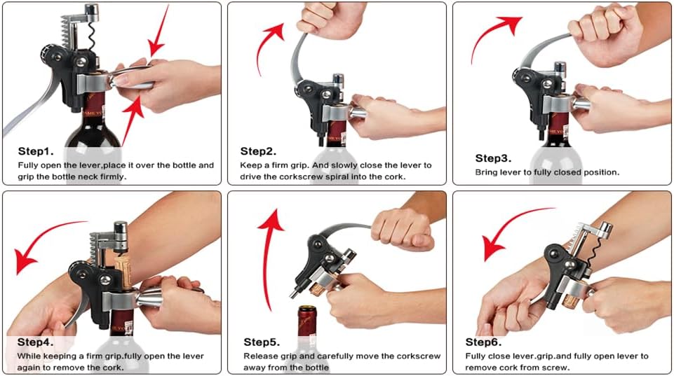 • Easy To Operate: It's classic straight-up performance mechanism ensures a quick opening of your favorite wines- Simply attach the wine opener to the bottle with a hand, and then pull the lever upwards and downwards - it's off with the cork in seconds