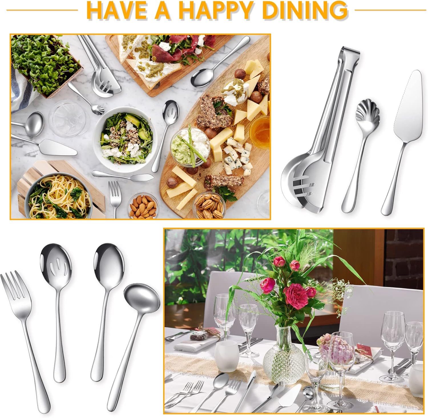• Humanized Design: smooth humanized handles of these pie server, soup ladle, serving spoon, slotted spoon and fork make serving easy, proper size and nice weight ensure comfortable hand feel; The serving tong also comes with humanized design, proper long handle makes it easy to pick up food