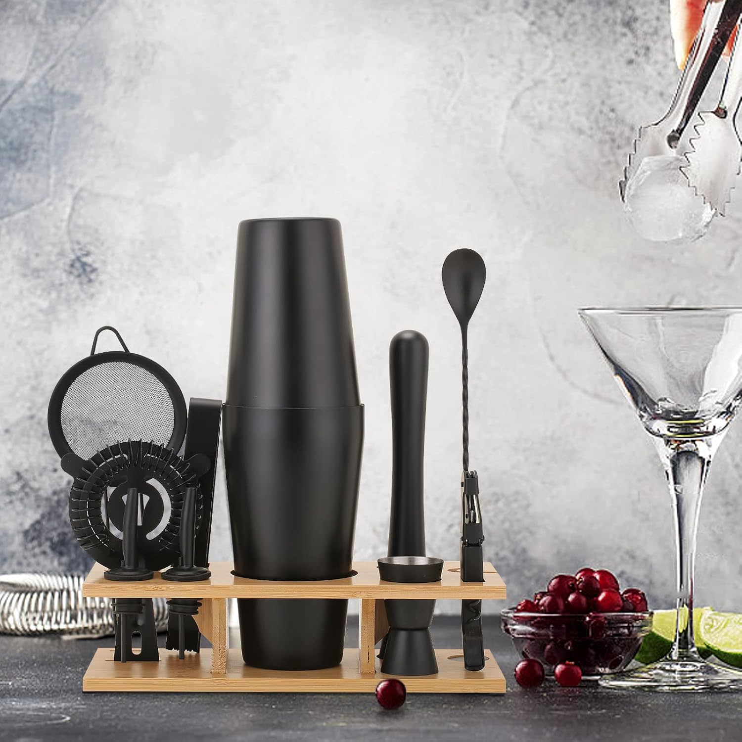 11Pcs-Cocktail Shaker Set Stainless Steel Bartending Kit 25oz Boston Shaker Bar Set Cocktail Mix Drink Making Kit Professional Bar and Home Drink Bar Tools for Bartender(Matte Black)