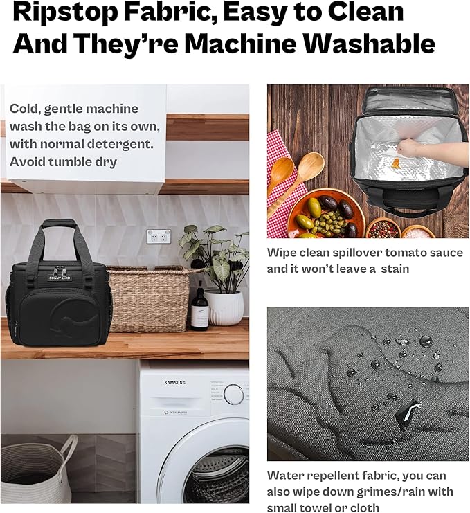 • [Machine Washable. Keep ‘em Clean] Not only can you pop them in the washing machine, but the silver lining and rain-repellent fabric are easy to wipe clean. Plus, tomato sauce won’t leave a light stain on the aluminum liner