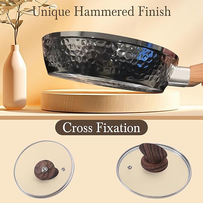 • ๐™€๐™ญ๐™ฆ๐™ช๐™ž๐™จ๐™ž๐™ฉ๐™š ๐™ƒ๐™–๐™ข๐™ข๐™š๐™ง ๐™‹๐™ง๐™ž๐™ฃ๐™ฉ: Tired of boring cooking? Kitchen Academy cookware sets design with a hammer print, enhances the artistic sense of the kitchen, when you use these pots and pans, you are more in the mood to prepare every meal. Ideal housewarming gift, Christmas gift etc for family and friends