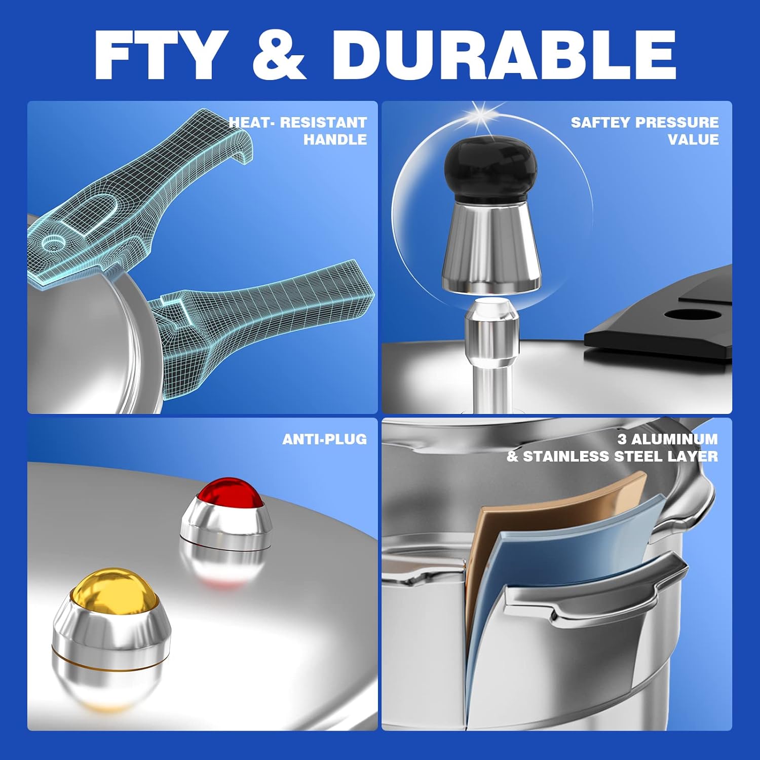 • MULTIPLE SAFEGUARD DEVICES: The WantJoin aluminum pressure cooker features 8 safety features, acting as a fully armed bodyguard for your cooking. It includes a self-locking valve, limit valve, anti-blocking lid, safety valve, pressure release window, and more. Cook with peace of mind!