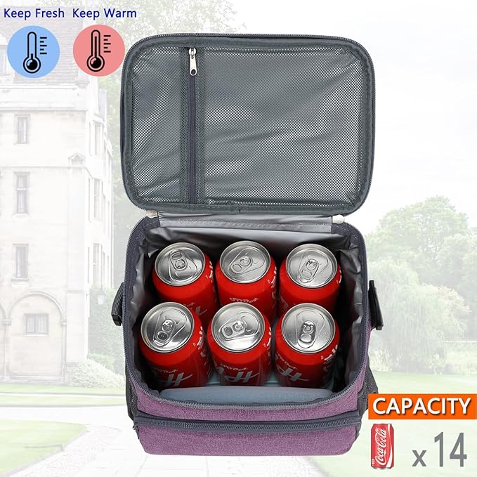 • ✿Large Capacity & Multi Compartments: This cute mini cooler (10.2 x 7.5 x 9 inches) is designed for maximum storage efficiency,which features one main zippered compartment to keep your food and drinks warm or fresh.One front zippered pocket for keys, snacks, cards, phone chargers, napkins and other essentials.Two mesh pockets for water bottles holders and one internal mesh pocket for knives,forks and spoons. It is enough to pack all of your food and snacks you need whole day.