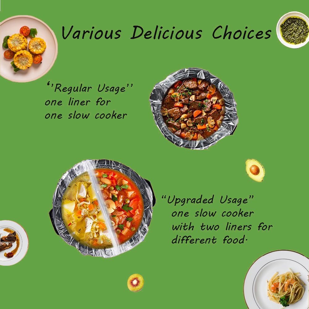 • Food Safe : your slow cooker liners are high temperature resistant (up to 375℉). It is made of reliable material that can not be ignited. BPA-free material,Cooking with a slow cooker liner will not affect the nutrition or the taste of food.