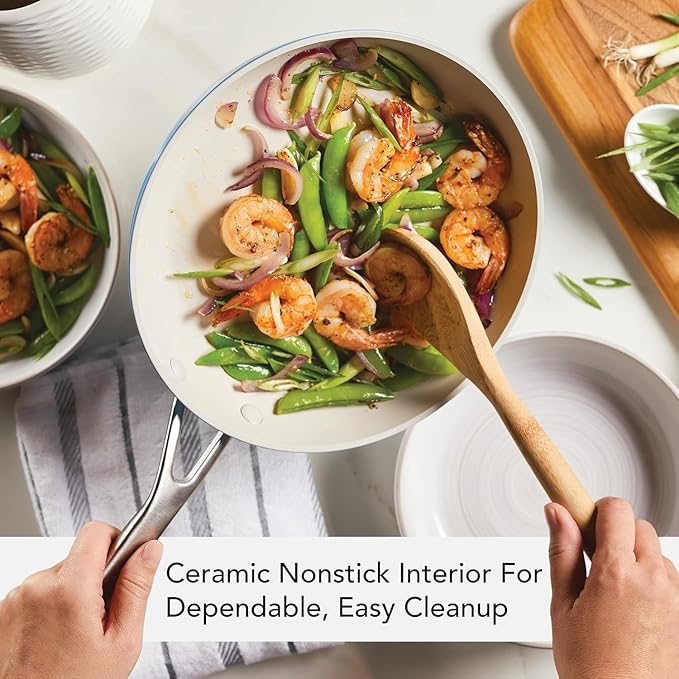• EASY-CLEAN CERAMIC: High performance ceramic nonstick is made without PFAS, BPA, Lead, or Cadmium* for safe, consistent food release and fast, easy cleanup (*Manufacturing process does not involve adding to the product any of these substances which may otherwise be present in the environment)