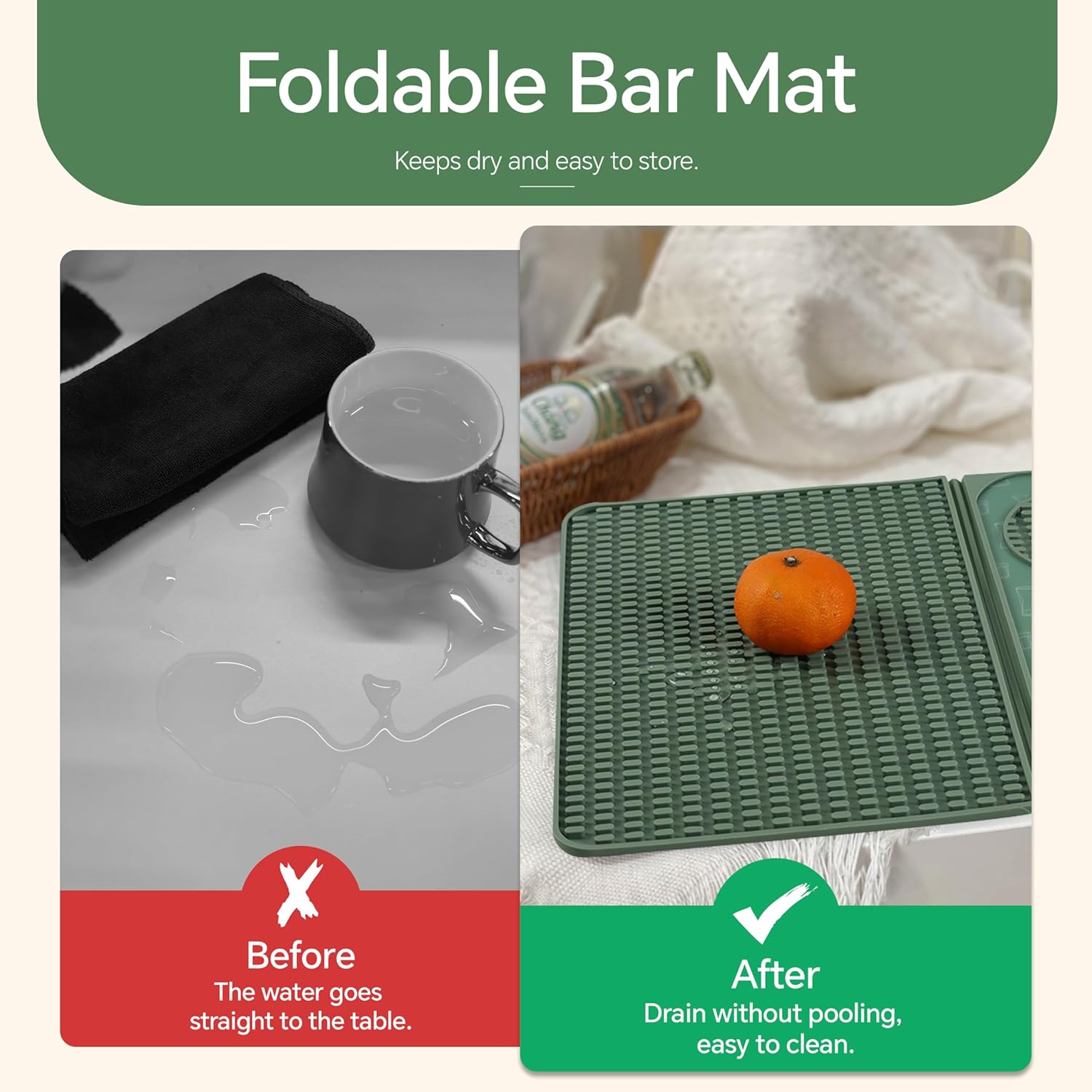 Bar Mat, Bar Accessories, Multifunctional Folding Cocktail Mat with Cutting Board, 18" X 12"(Green) Drying Mats,Bar Mat for Countertops,Bar Decorations for Home, Outdoor Bar Accessories,Travel
