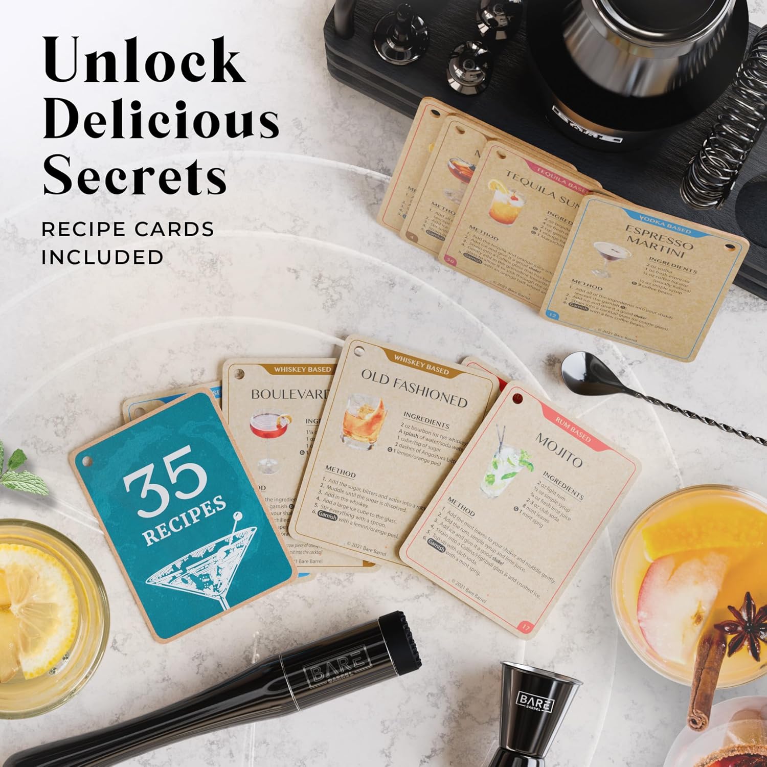 BARE BARREL® Mixology Bartender Kit Bar Set | 14-Piece Cocktail Shaker Set | Martini Barware Mixing Tools for Home Bartending | 35 Recipe Cards | Gift Set (28oz Boston Shaker, Jet Black/Black)