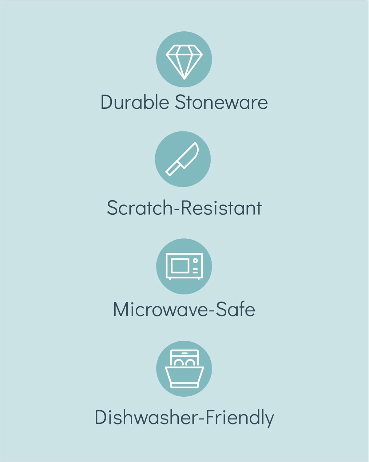 • ✅ Pure Joy & Culinary Delight: Crafted from solid stoneware with a high-fired, glazed & scratch-resistant surface, this dishes set for 8 is for those who cherish life's finest moments and appreciate top-notch quality in their ceramic dinnerware sets