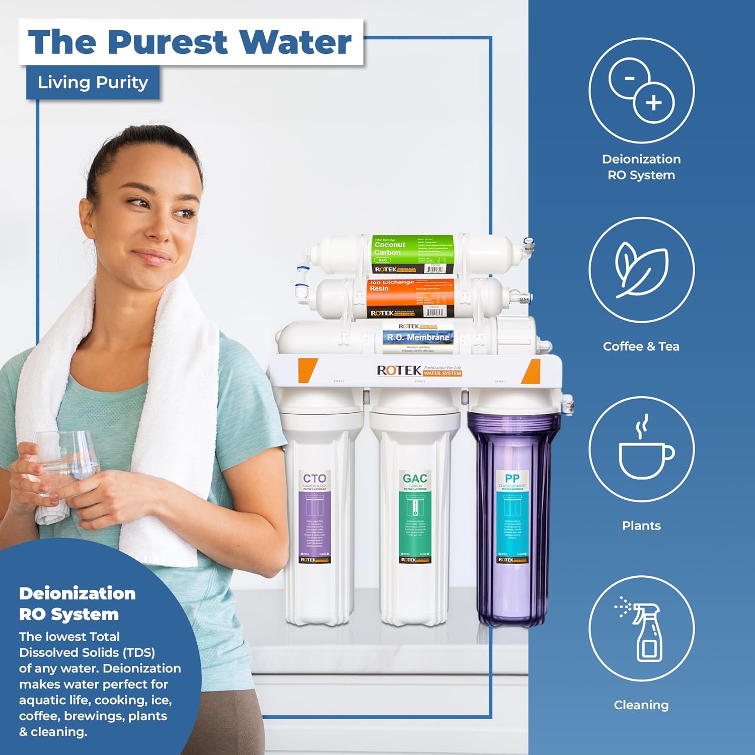 • ULTIMATE WATER PURIFICATION: Enjoy the healthiest water on Earth with Rotek's expertly engineered water filters. Our system works seamlessly to produce the safest and best-tasting water, perfect for drinking, cooking, and more.