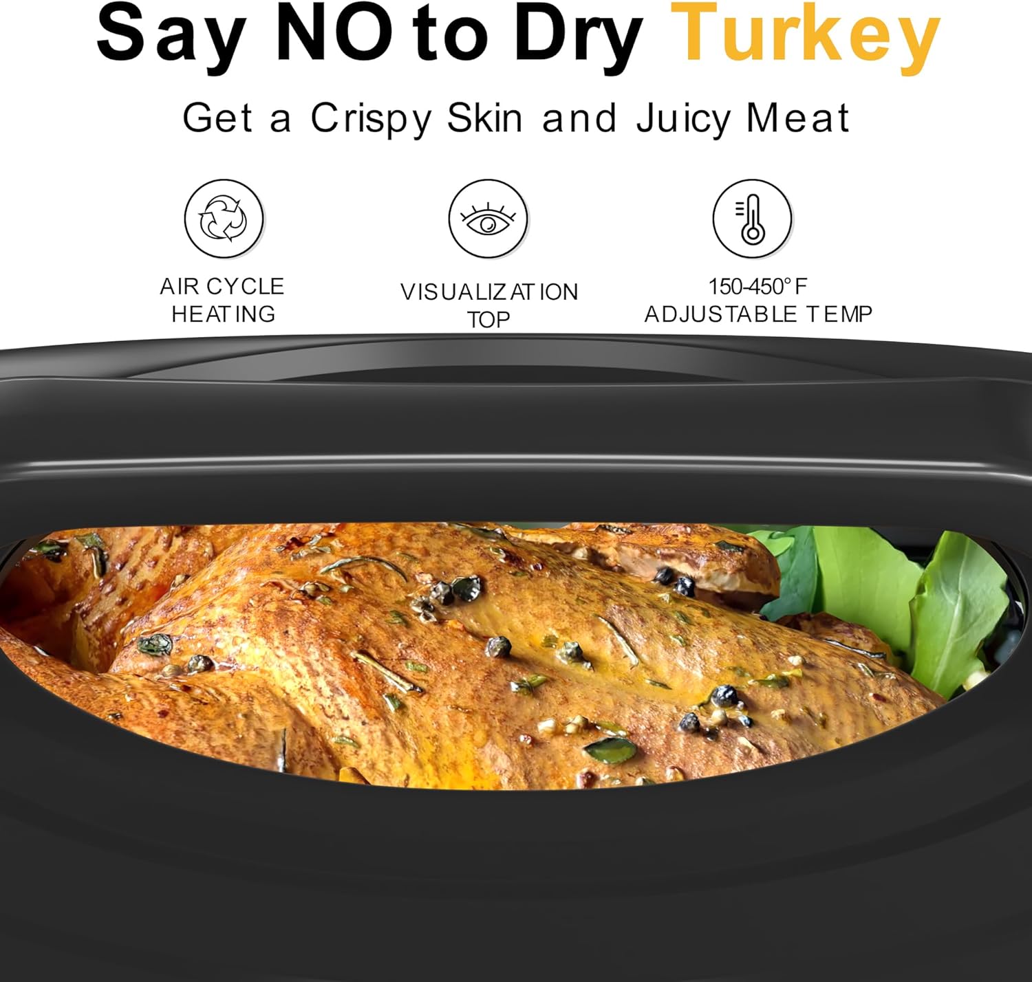 • 【Warm / Defrost / Multifunction】With this unique and innovative Defrost setting, you can take your turkey from frozen to roasted in hours - not days ! Don't worry about preparing food too early to make the food cold---Warming setting keeps dinner at ideal serving temperature. 150-450°F Full-Range Temperature Control, providing versatile cooking options for roasting, baking and slow cooking.