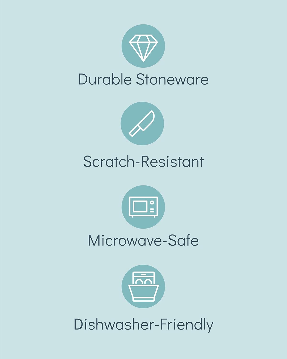 • ✅ DURABLE QUALITY THAT LASTS: Each piece is crafted from high-quality stoneware with a fired, glazed, and scratch-resistant finish, perfect for those who appreciate durability and sophisticated style in their dinnerware.