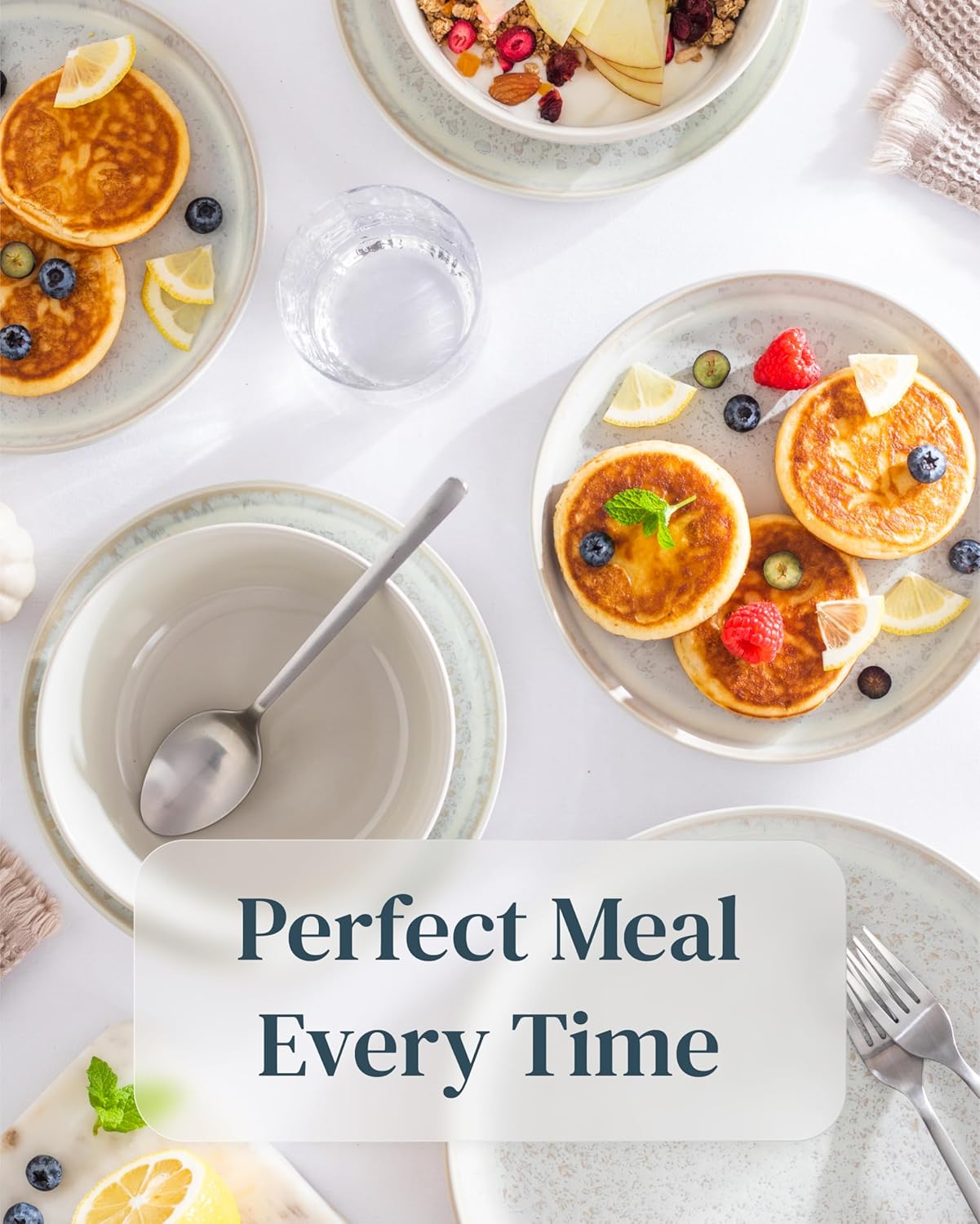 • ✅ DURABLE QUALITY THAT LASTS: Each piece is crafted from high-quality stoneware with a fired, glazed, and scratch-resistant finish, perfect for those who appreciate durability and refined style in their dinnerware.