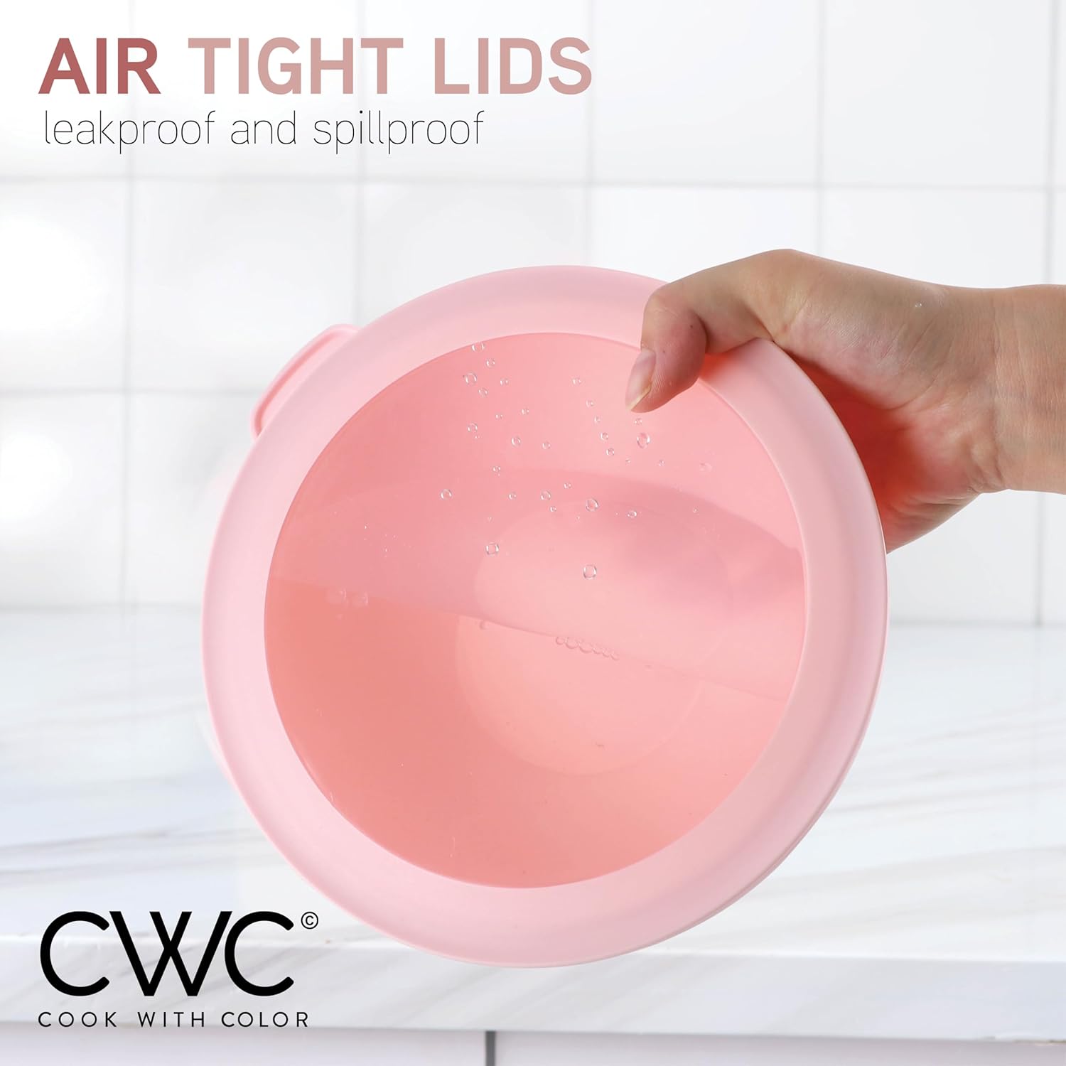 COOK WITH COLOR Mixing Bowls with Lids - 12 Piece Plastic Nesting Bowls Set includes 6 Prep Bowls and 6 Lids, Rhombus Design - Microwave Safe (Rose)