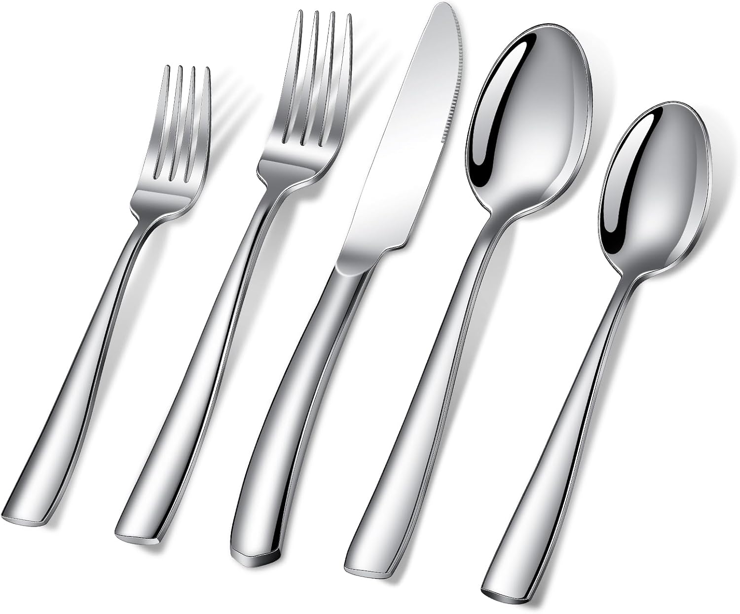 • Elegant Modern Design: This is a very modern art style silverware set, clean lines, highly mirror polished, smooth edges, free of rough spots and edges, unique and elegant appearance would match well with your existing eating utensils, enhance your dining experience.