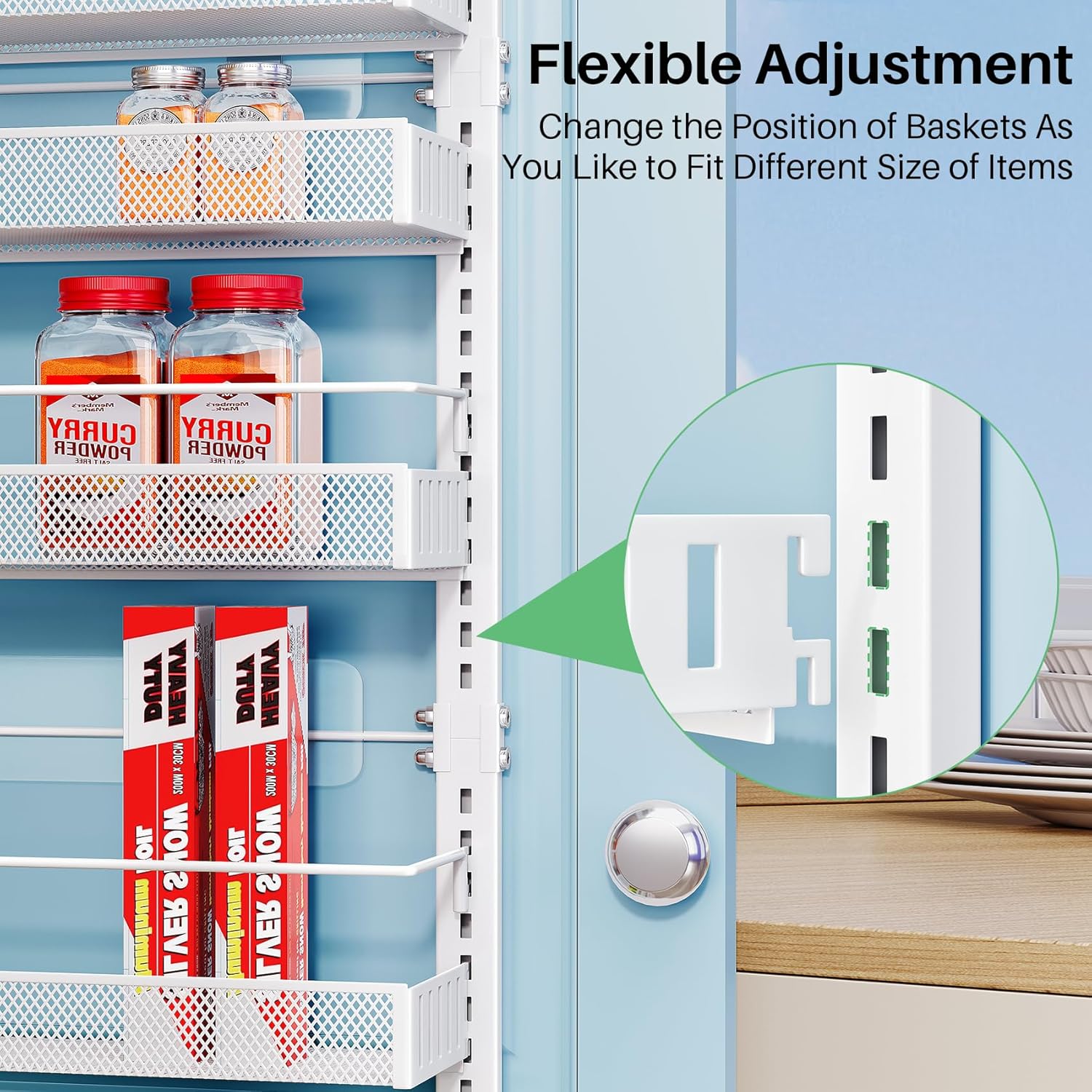 Over the Door Pantry Organizer - 8 Tier Adjustable Pantry Door Spice Organizer, Large Capacity Hanging Door Spice Rack for Kitchen Pantry Organizers and Storage (White, 17"W x 6"D x 69"H)