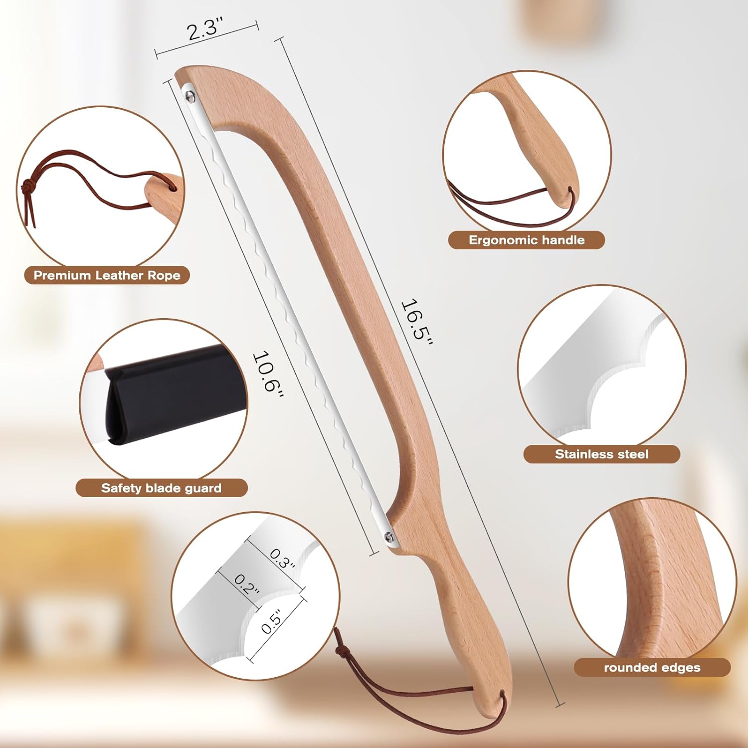 • [Versatile Use] Our wooden bread slicer for homemade bread measures 16 1/4 inches in length, 2 3/8 inches in width, and can slice up to 9 inches long. It’s perfect for homemade bread and can also be used to slice bagels, baguettes, salads, fruits, vegetables, cheese, and cakes.