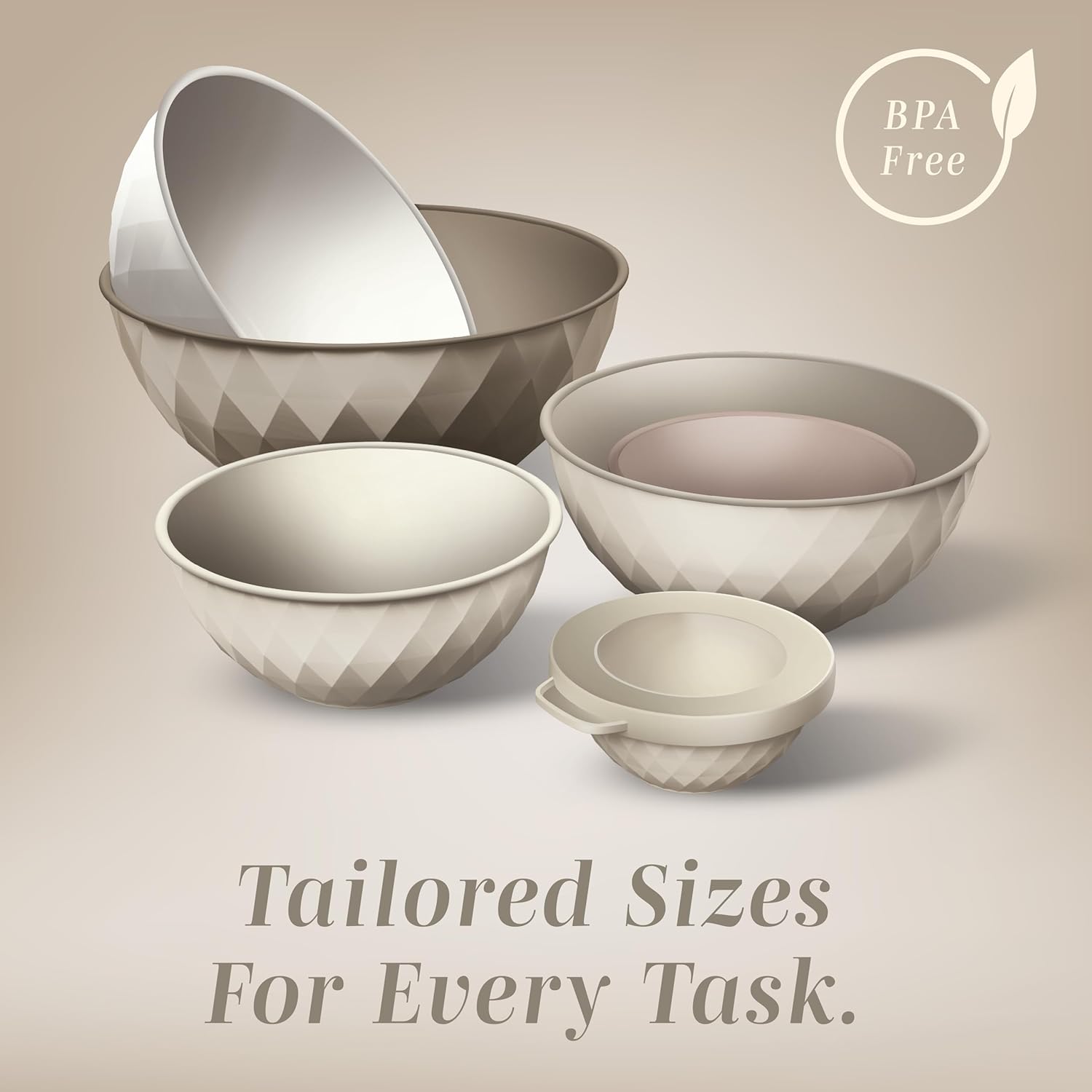 COOK WITH COLOR Mixing Bowls with Lids - 12 Piece Plastic Nesting Bowls Set includes 6 Prep Bowls and 6 Lids, Diamond Design - Microwave Safe, Brown
