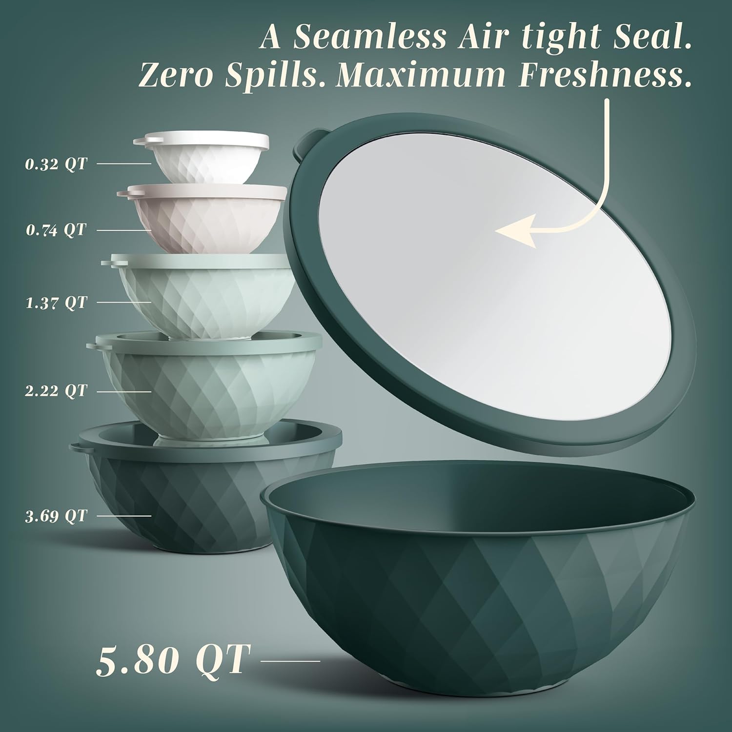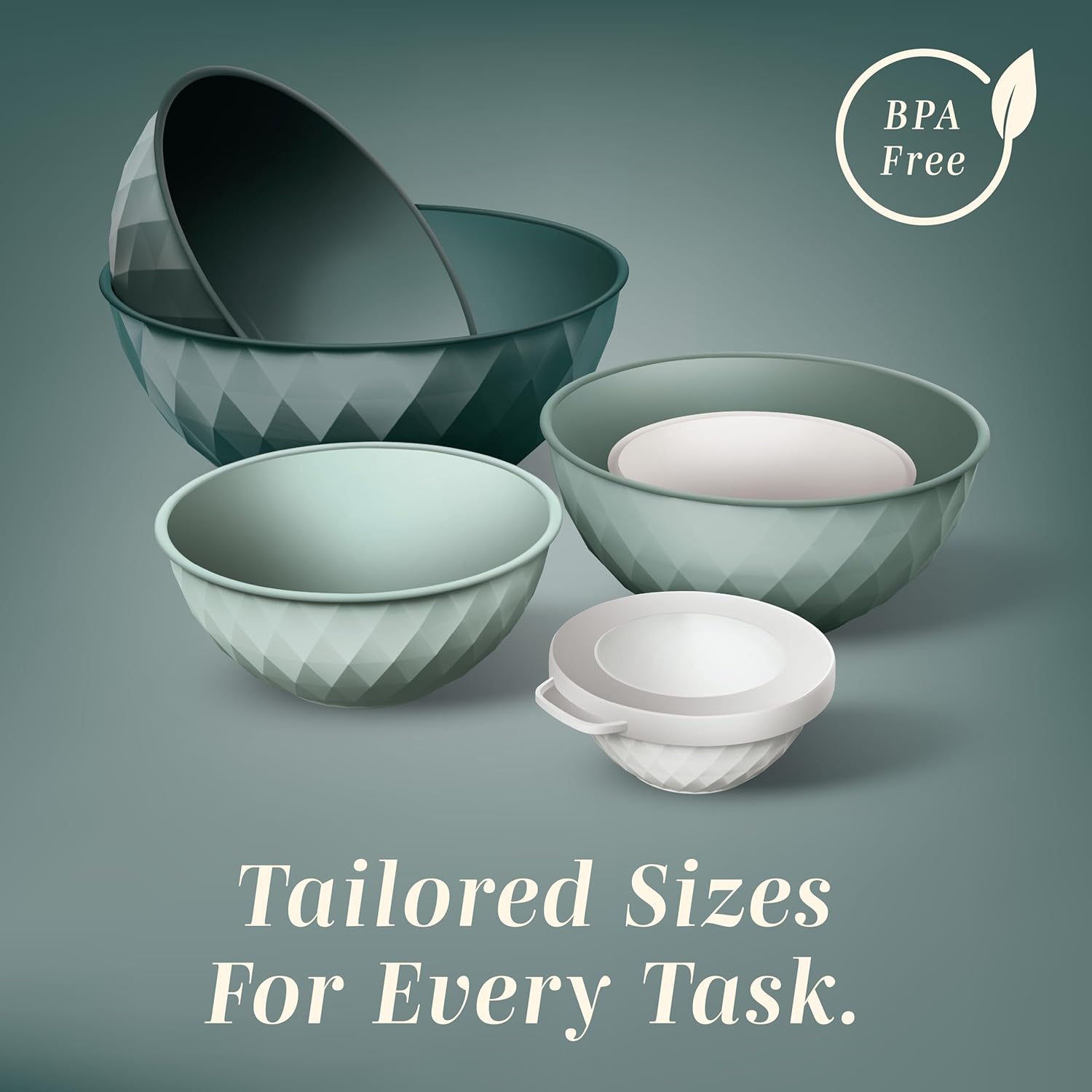 COOK WITH COLOR Mixing Bowls with Lids - 12 Piece Plastic Nesting Bowls Set includes 6 Prep Bowls and 6 Lids, Diamond Design - Microwave Safe, Green