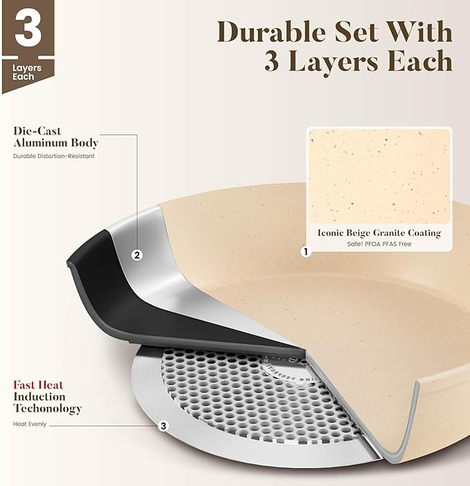 • ๐™ƒ๐™š๐™–๐™ก๐™ฉ๐™๐™ฎ ๐˜พ๐™ค๐™ค๐™ ๐™ฌ๐™–๐™ง๐™š ๐™Ž๐™š๐™ฉ ๐™ฌ๐™ž๐™ฉ๐™ ๐™๐™ค๐™ญ๐™ž๐™ฃ-๐™๐™ง๐™š๐™š: Made of natural granite, our kitchen cookware set is Teflon-free and guarantees no PFAS, PTFE, PFOA, lead, or cadmium.Ideal choice for safety-conscious families, especially those with babies