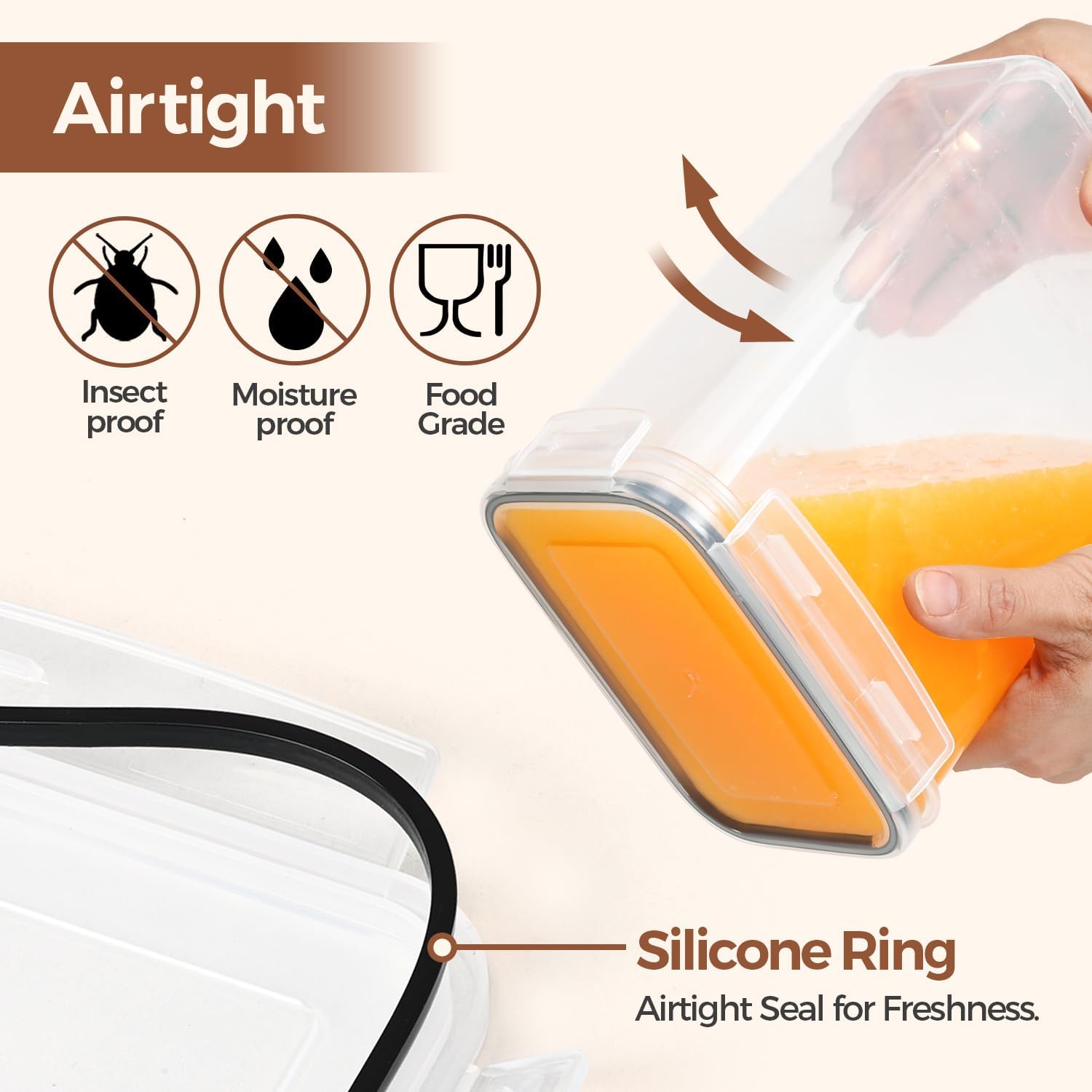 • Food Grade Clear Material: Crafted from food grade plastic, the air tight containers for food is durable for everyday use; The clear containers allow you to quickly check the quantity and quality of contents at a glance, suitable for your pantry storage
