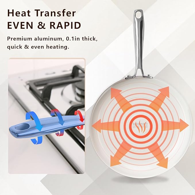 • Eco-Friendly & Non-Toxic Coating: the nonstick ceramic coating healthy, SGS approved. non-toxic, PFAS PFOA & PTFE free. our ceramic coating provides a safe and healthy cooking experience. Enjoy peace of mind knowing your food is free from toxic substances.