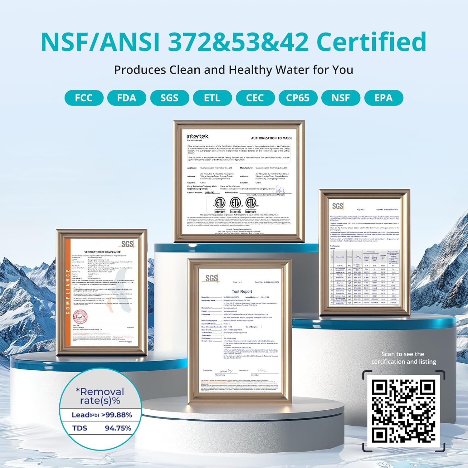 • [9 Stage Filtration System & Tested by SGS] Viomi reverse osmosis water filter features a 0.0001μm membrane for superior purity. SGS Certified to NSF/ANSI standards 372, 53, and 42, it's proven to reduce PFAS contaminants like lead, fluoride, and PFOA. Enjoy exceptional purity with a TDS reduction of up to 94.75% and PFOS/PFOA reduction of up to 99.60%.