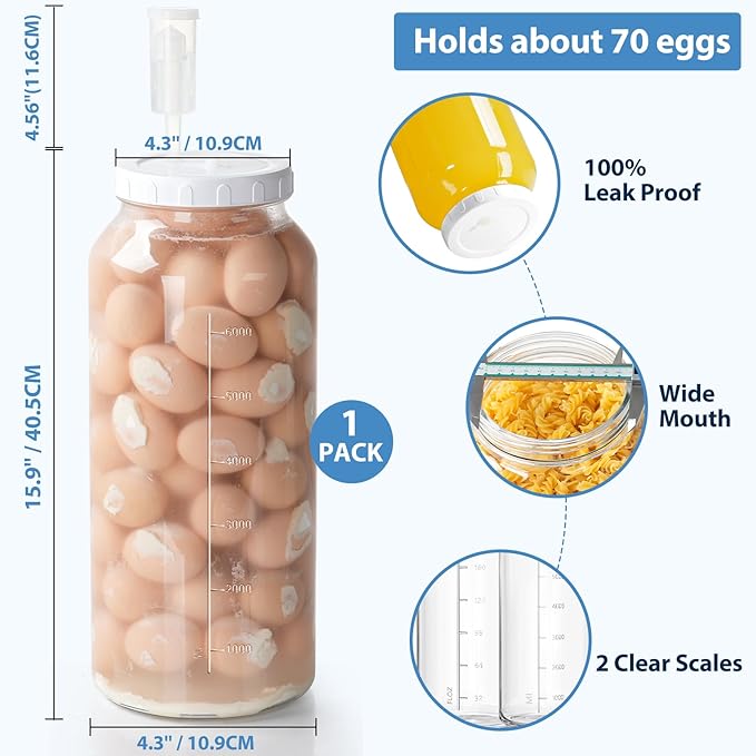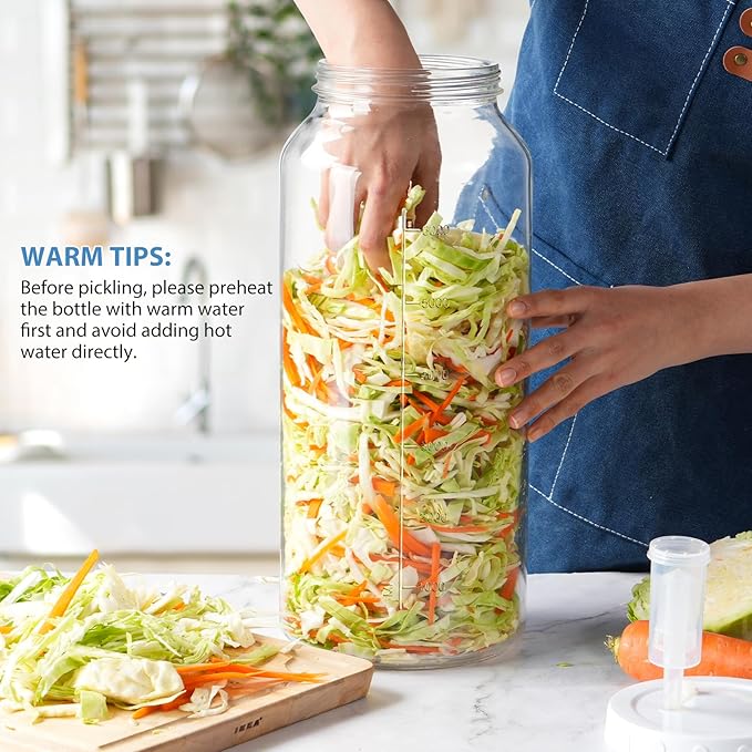 • Multipurpose Kimchi Containers: 7600 ml/256 fl oz large capacity glass jar, meet various needs such as brewing, fermentation, pickling cucumbers and water eggs, terrarium, etc. Please note: It is recommended to use warm water to preheat the large pickle jar before filling it with hot water