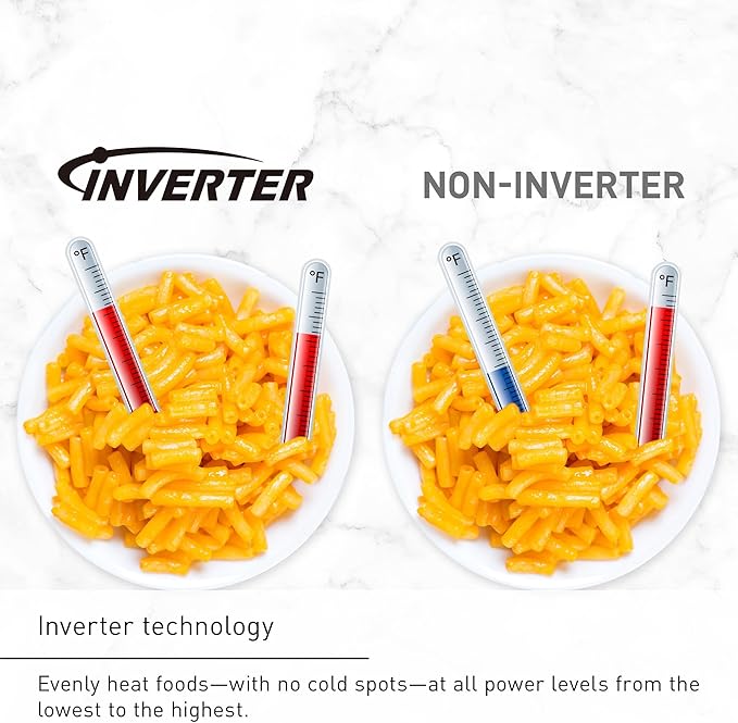 • Even Cooking for Delicious Results: Enjoy perfectly-cooked food every time; Inverter technology ensures even heating at all power levels, eliminating cold spots and preserving the food's natural flavors and nutrients, so every bite is delicious and nutritious
