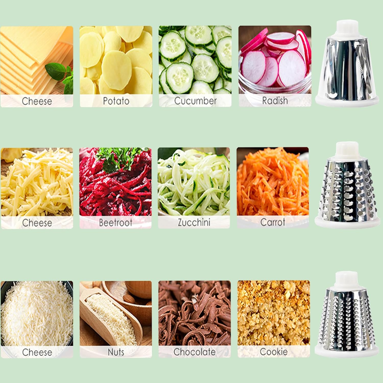 • 🧀[Safe and Efficient Grating]: manual rotary cheese grater offers a safe and efficient way to grate cheese, slice vegetables, and grind nuts. Made with high-quality stainless steel blades and food-grade BPA-free plastic, it ensures reliable performance without the need for electricity. Say goodbye to hand-contacting blades and enjoy hassle-free grating.