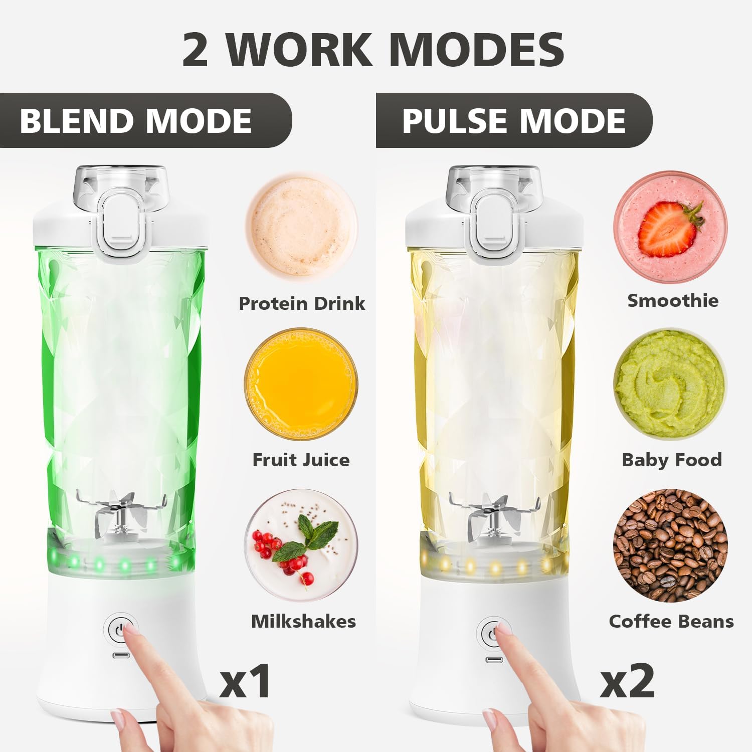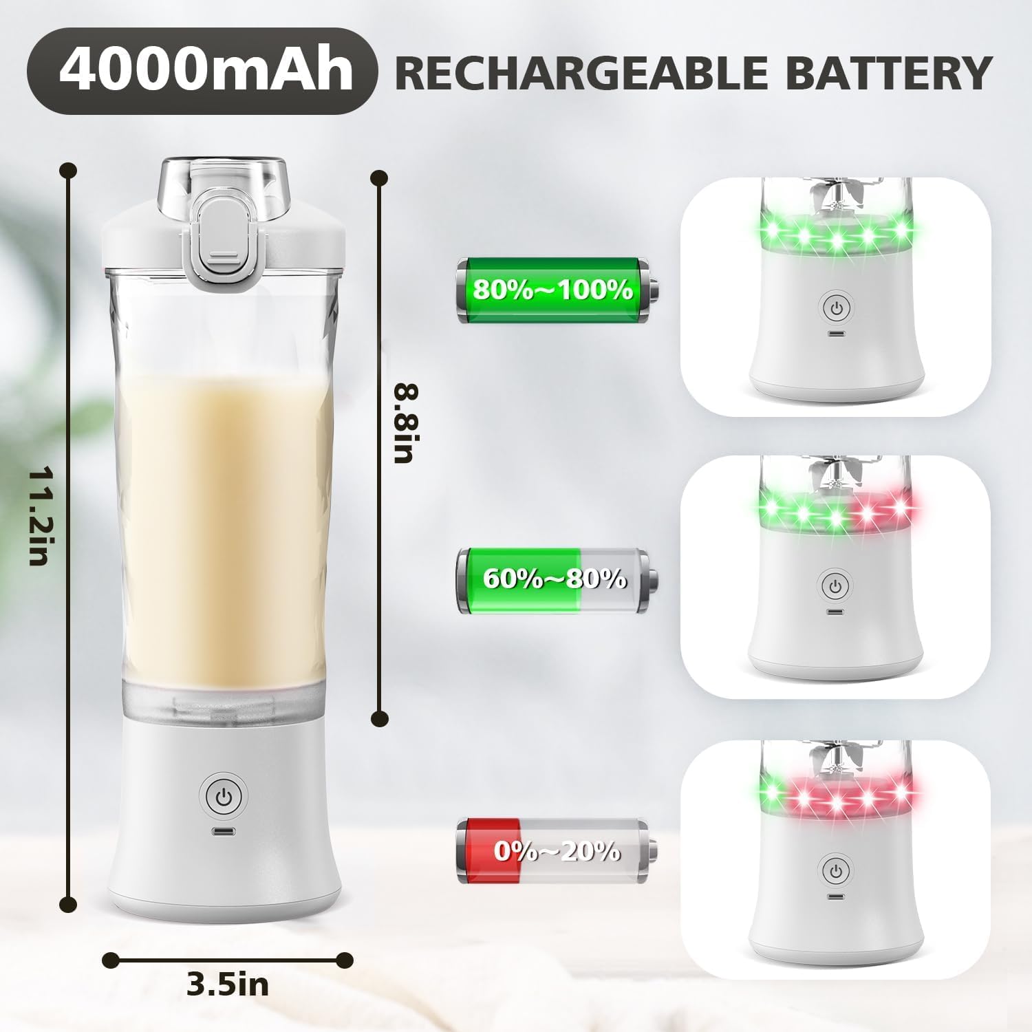 • Portable Design: This on the go blender has a built-in 4000mAh battery and supports USB charging, making it convenient to charge anywhere. This mini portable blender for smoothies and shakes features a lightweight design, making it perfect for travel, the gym, and the office. It's easy to carry and fits in backpacks, gym bags, or car cup holders.