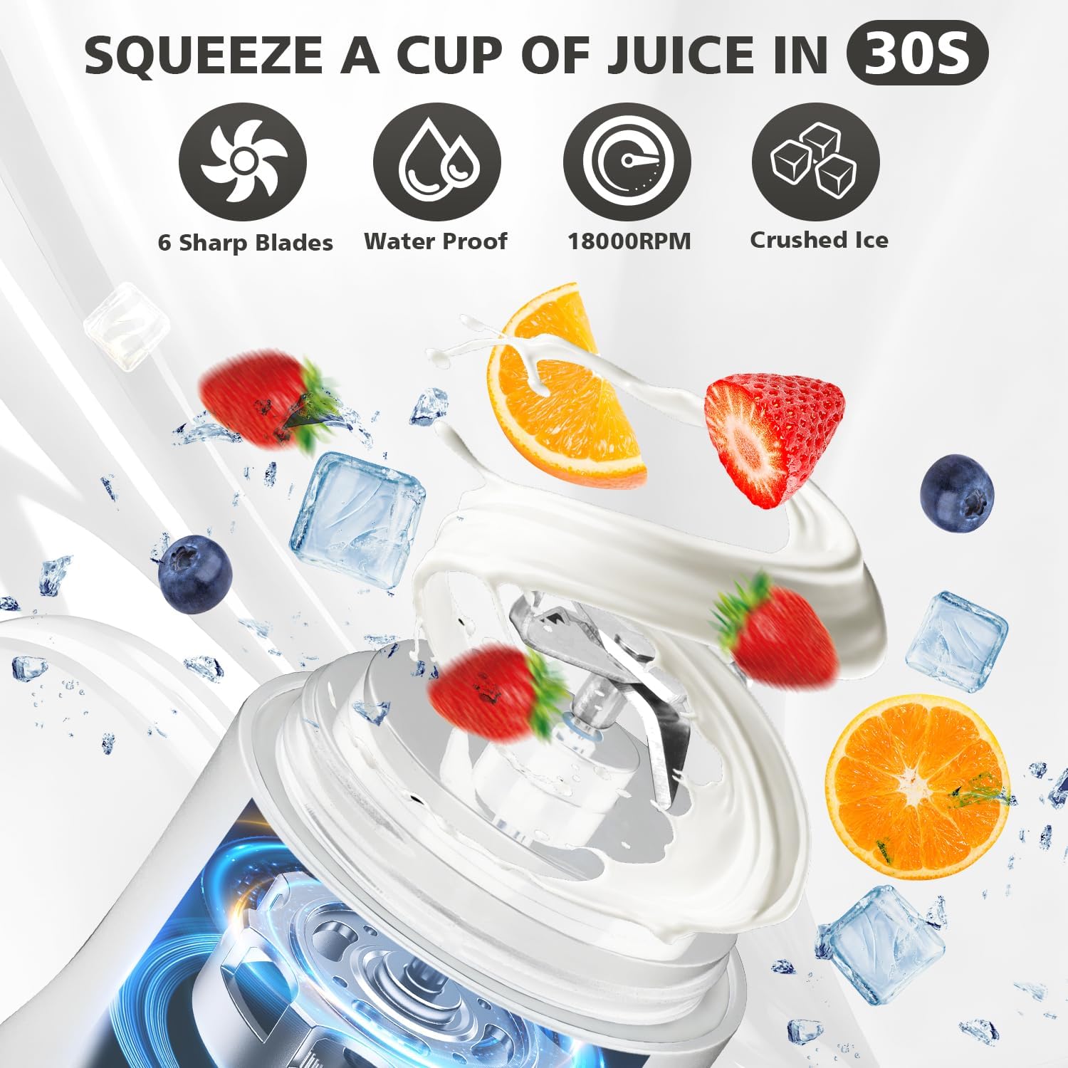 • Lightweight and Powerful Blender: The Swietonic portable blender features a 150W motor and 6 stainless steel blades, with a rotation speed of up to 18,000 RPM. It quickly crushes ice, frozen fruits, and vegetables, creating smooth smoothies or shakes in just 30 seconds. With a 20oz capacity, it meets your daily beverage needs, allowing you to enjoy fresh drinks anytime.