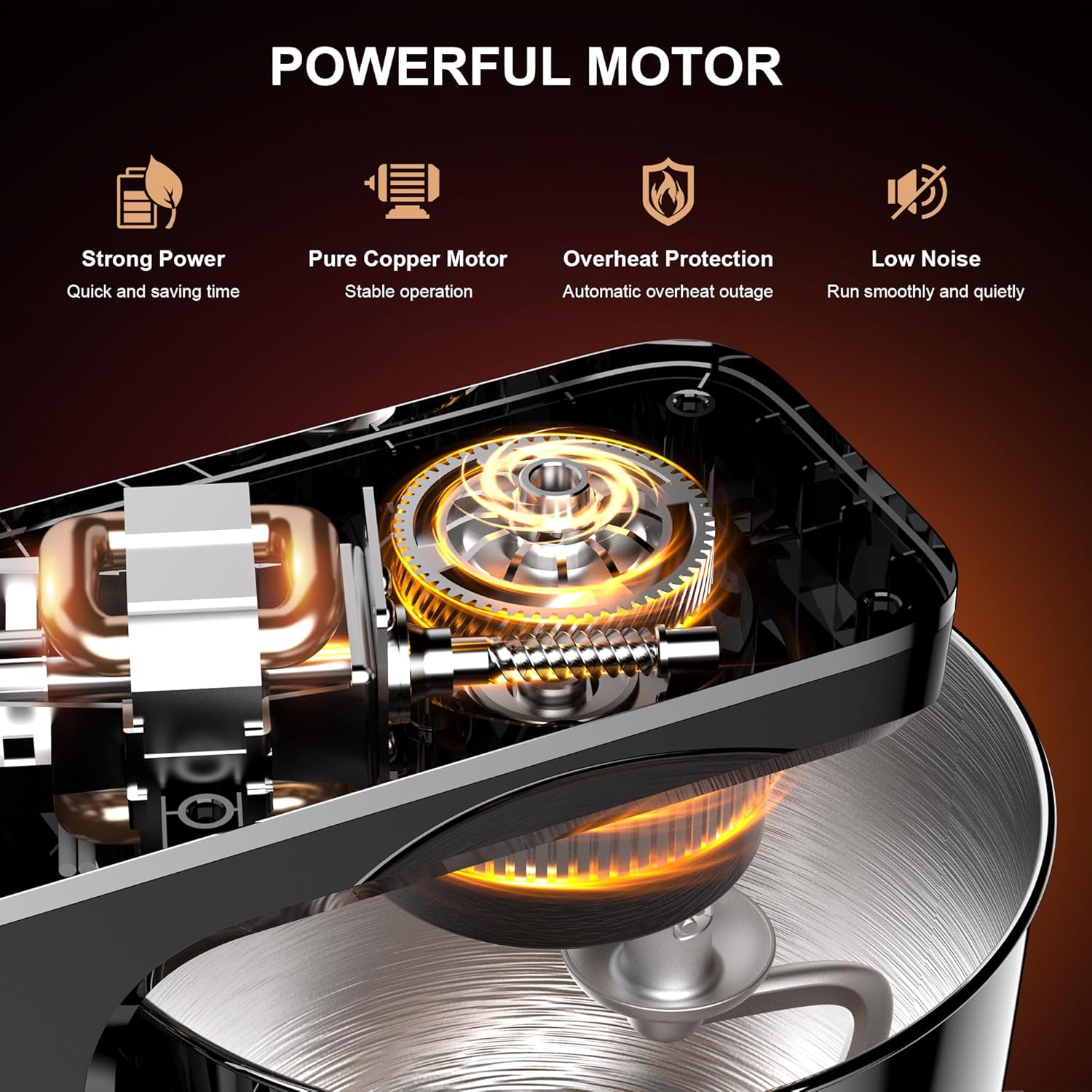 • Versatile Attachments Included: Our baking mixer comes with a dough hook, whisk, beater and a silicone spatula, enabling you to tackle a variety of recipes, from heavy dough to light meringues, ensuring professional-quality results every time