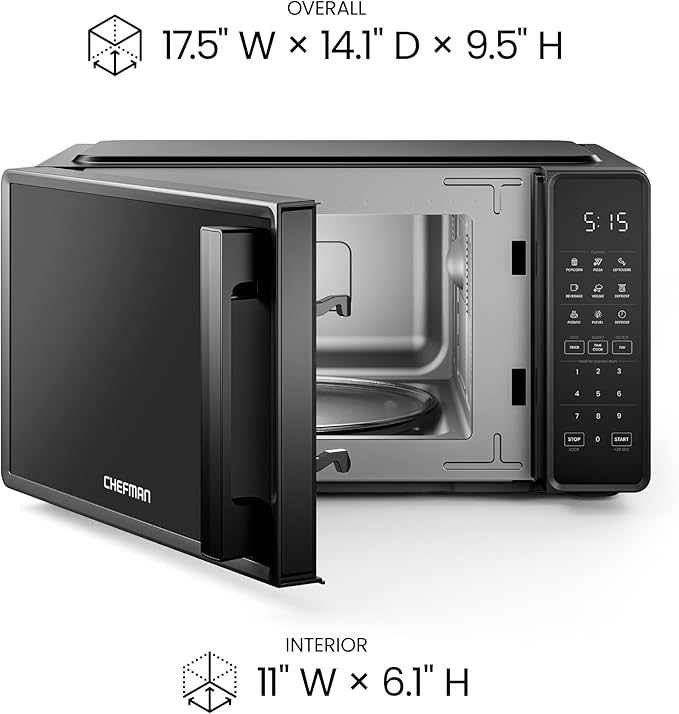 Chefman Countertop Microwave Oven 0.7 Cu. Ft., 700 Watts with 10 Power Levels, 6 Cooking Presets with One-Touch Express Cook, Eco Mode, Child Safety Lock, & Mute Button - Black