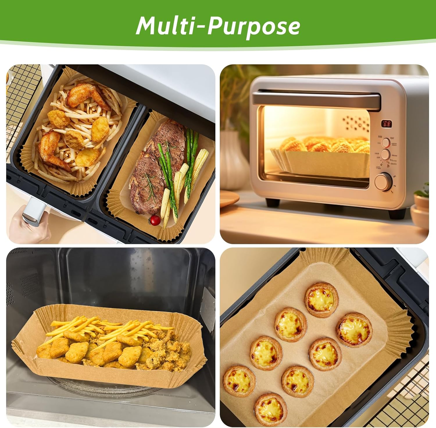 • 【Food Safe】:Made of premium food grade unbleached natural paper and silicone coating, these air fryer liners are BPA-Free & PFAs-Free, they won’t release harmful substances during your baking.