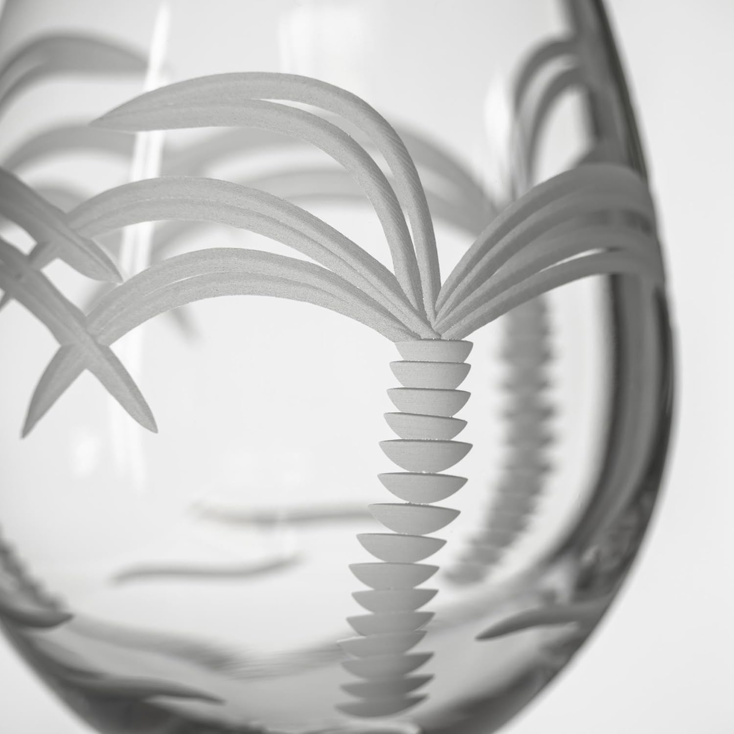 • COASTAL DESIGN: Each glass is diamond-wheel engraved with a graceful palm tree motif, perfect for beach-inspired entertaining or laid-back elegance.