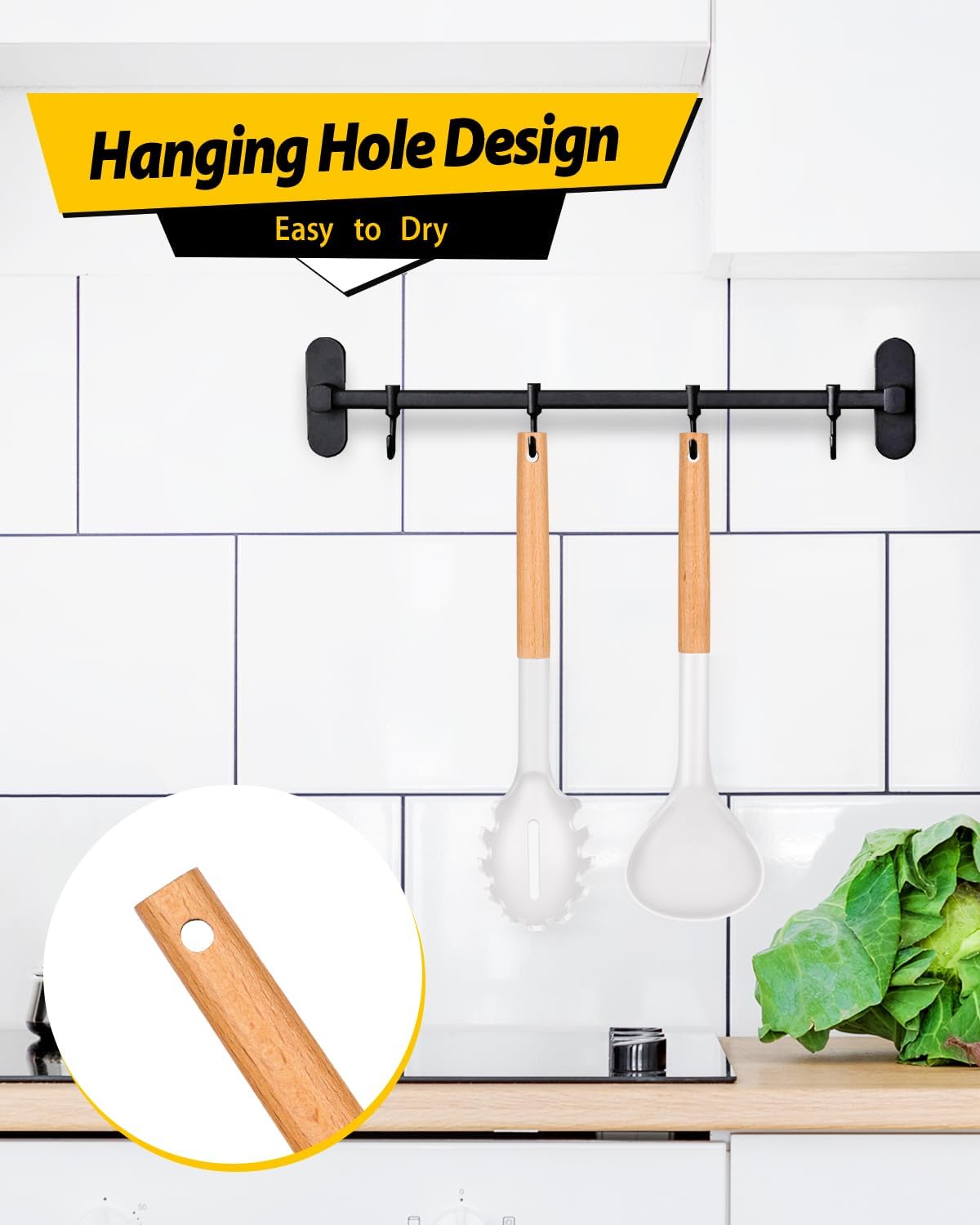 • Easy to Clean : After each use, hand wash with a soft cloth to protect wood and easily clean excess fat and food; The design of the round hanging hole makes it easy to dry and hang