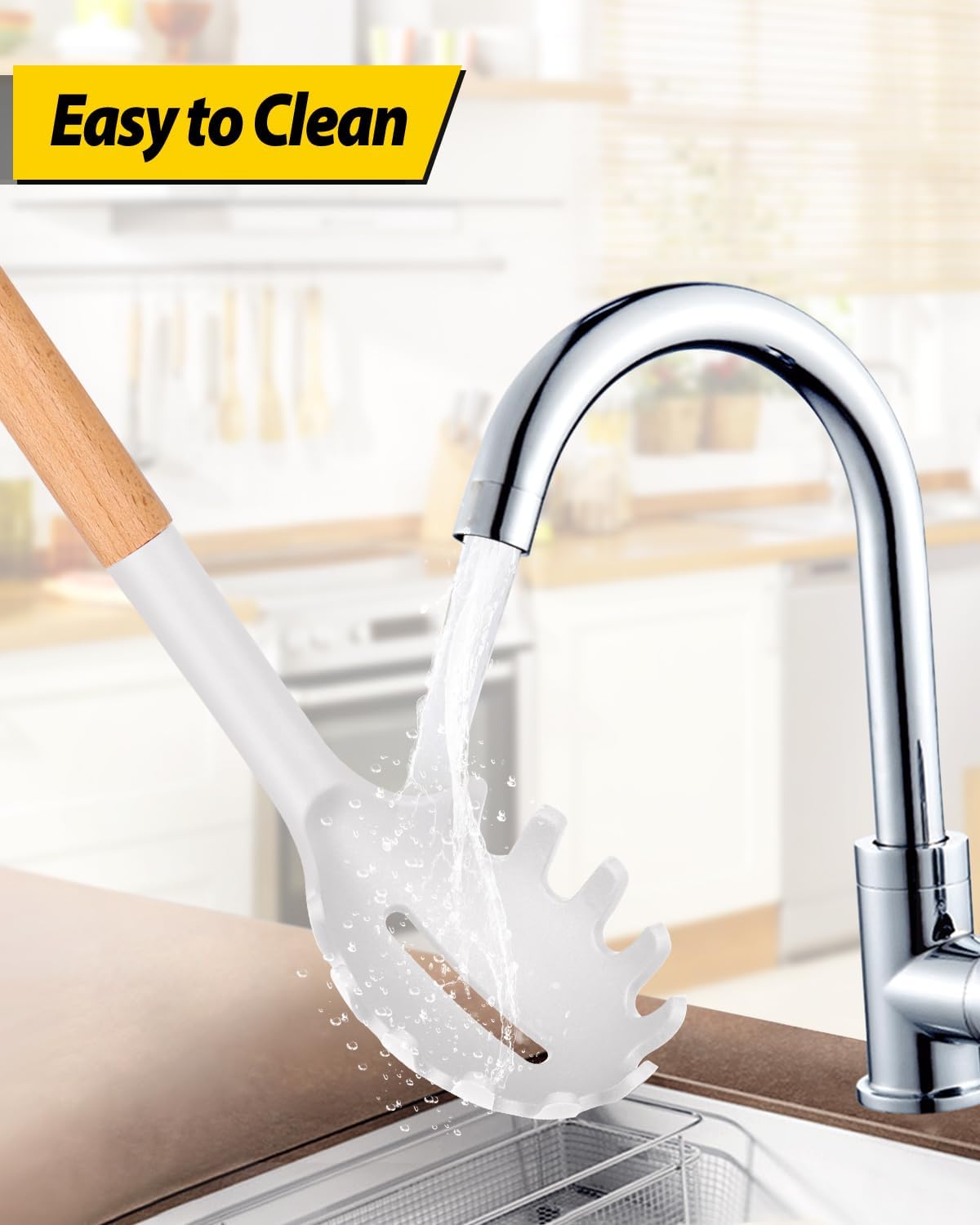• More Safe and Healthy : Our kitchen utensils are made of food-grade silicone, free of BPA;Even at high temperatures, there is no need to worry about melting or deforming;And the soft silicone head won't scratch the coating, it can better protect your pot