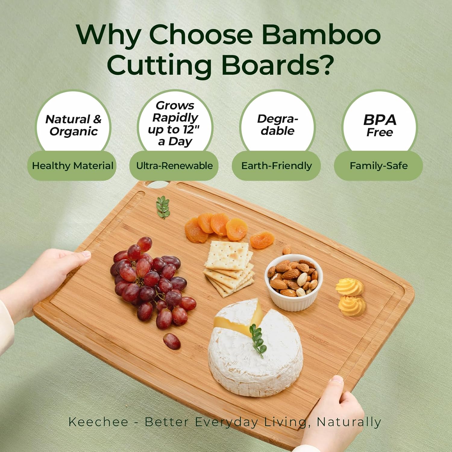 Dishwasher Safe Bamboo Cutting Boards 15.4x11.7in Heat-Resistant Chopping & Charcuterie Board with Juice Groove, Durable Lightweight Kitchen Essentials for Meat, Vegetables, Easy Clean